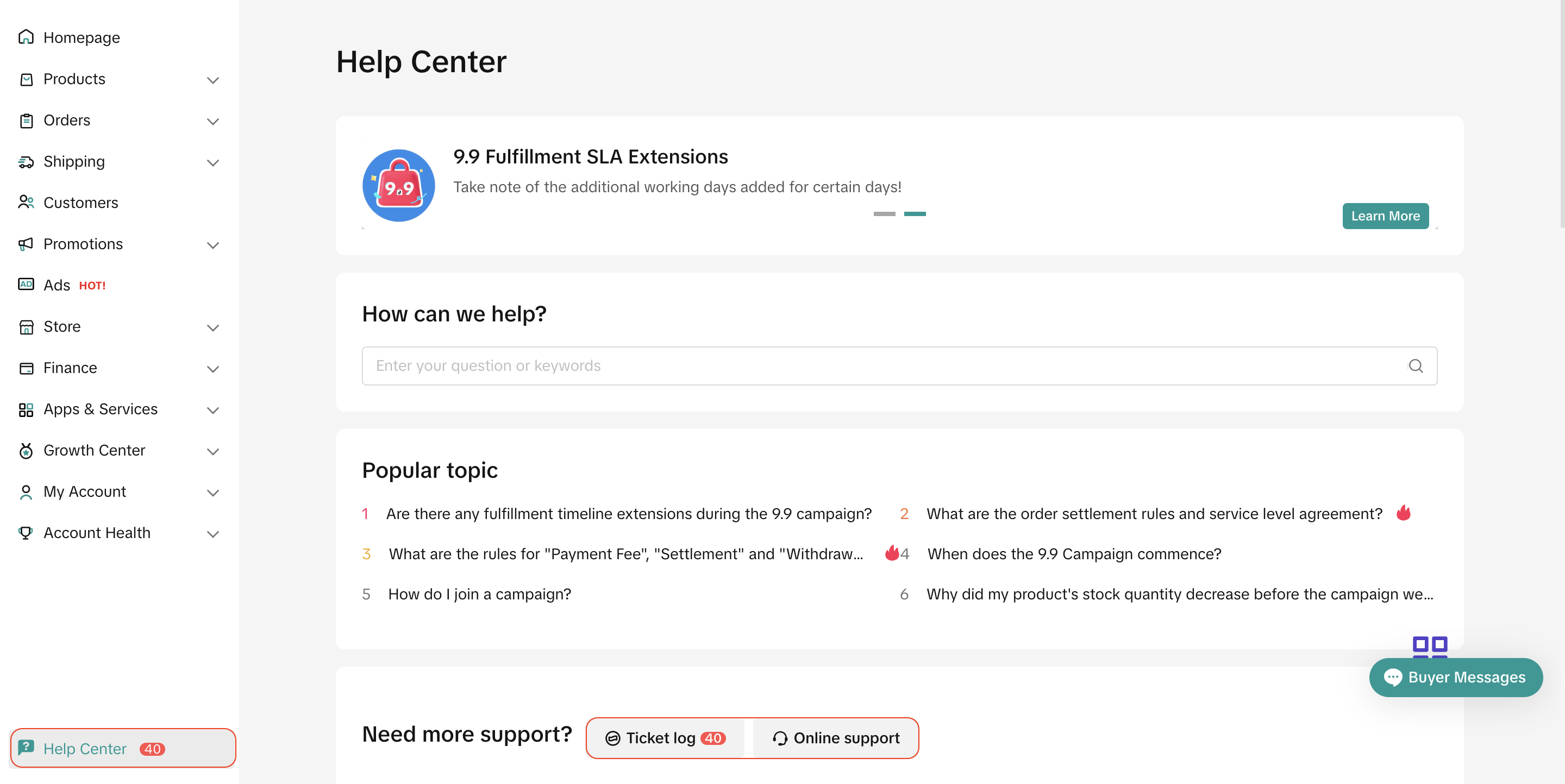 - 您可以在TikTok Shop卖家中心 -> 帮助中心联系我们的支持团队。