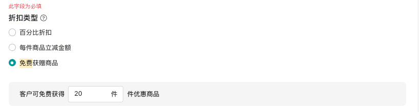 折扣类型:选择买X赠Y活动中【赠】的商品营销活动