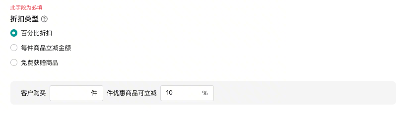 如果有多个多买优惠促销创建,买家只会看到的多买优惠促销与最低折扣。