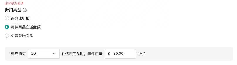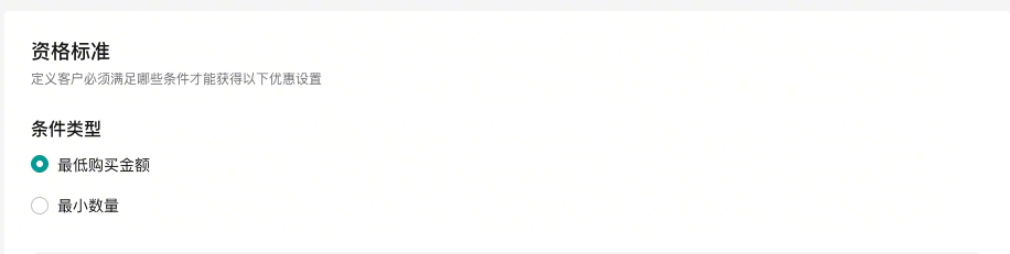 - 折扣条件:基于订单金额或商品数量;
