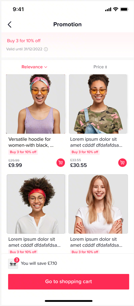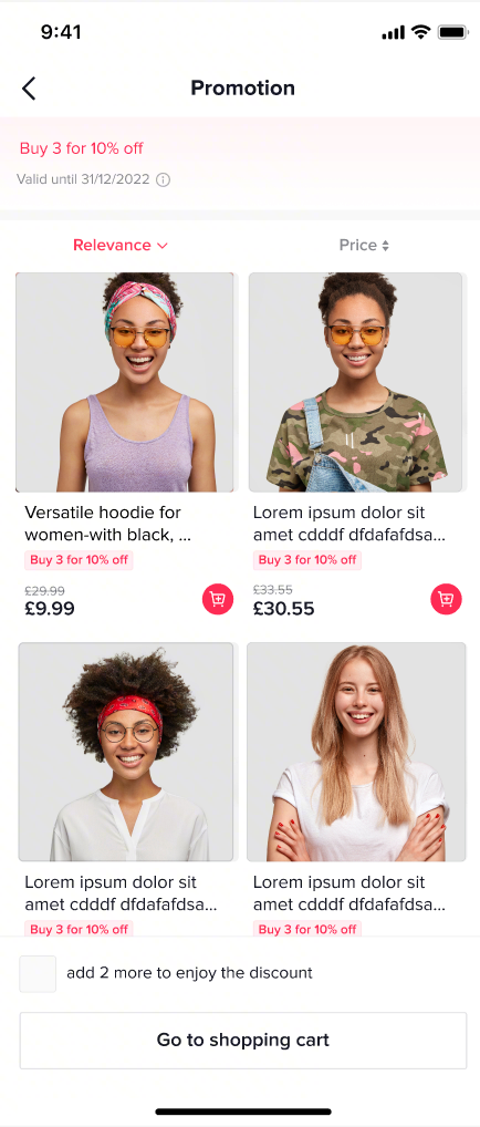 - 消费者必须手动选择活动商品并添加到购物车,添加后,折扣会在结账时自动应用