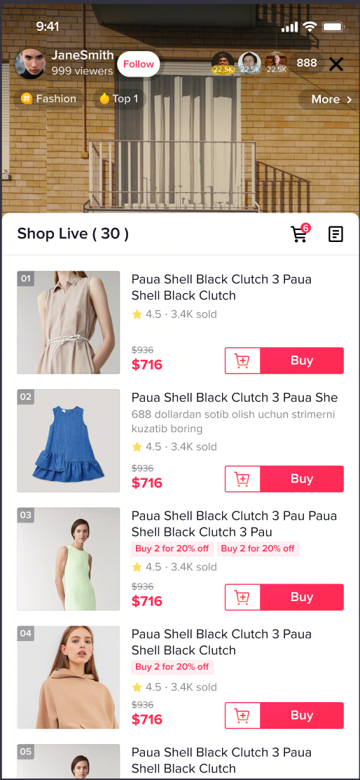 买家将获得6件商品的30%折扣。