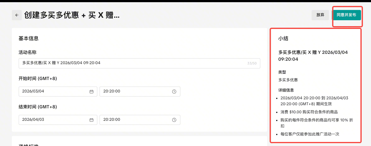 如何创建多买多优惠+买X赠Y?