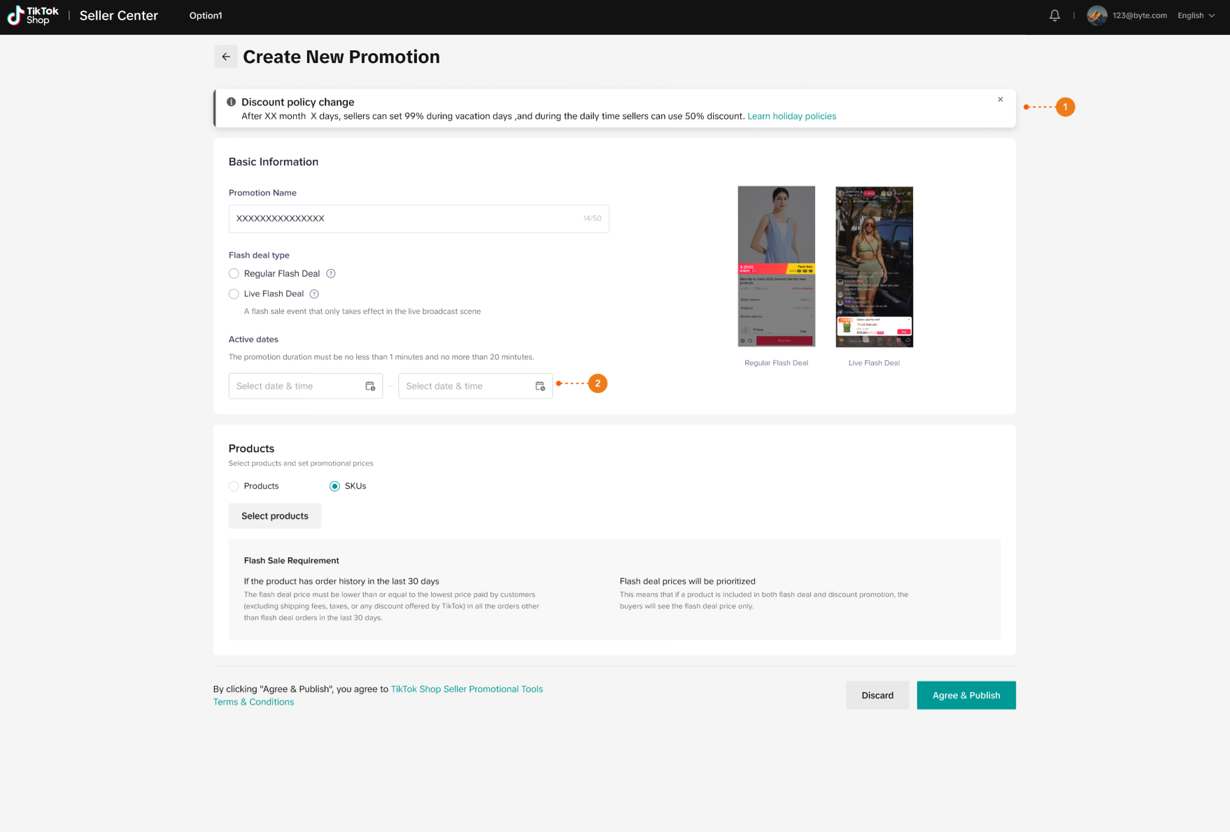 如果选择的促销时限不在或仅部分在条件日期内,则当前折扣门槛(1%-50%)将生效。
