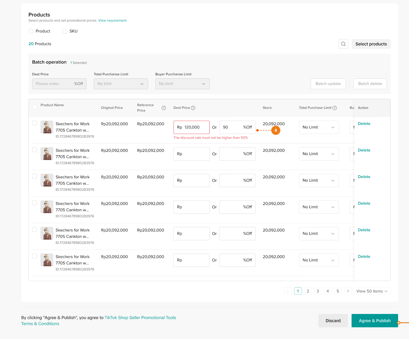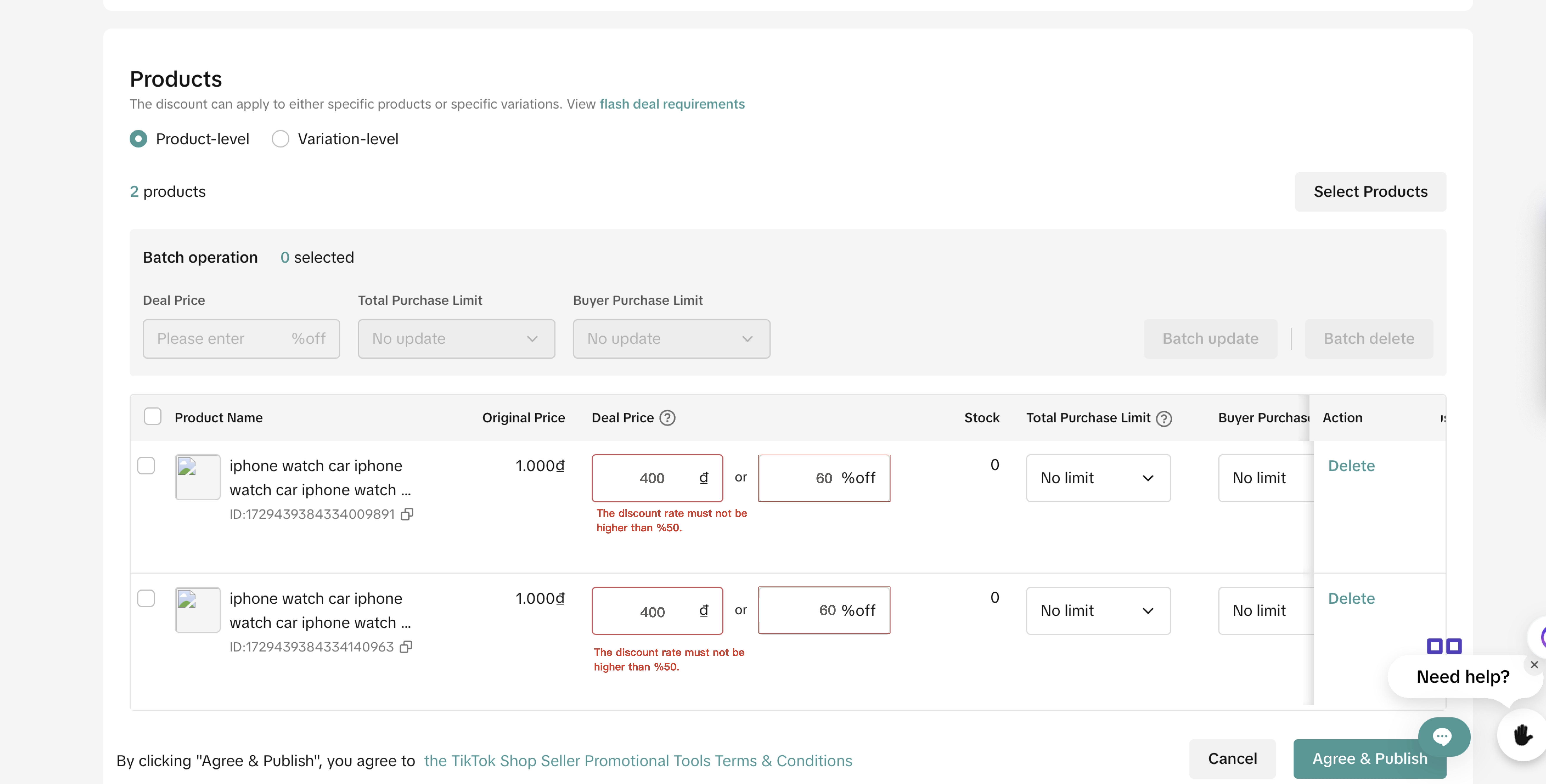 | 错误消息:最小折扣或最大折扣 | 提示警告信息:卖家仍能成功创建 |