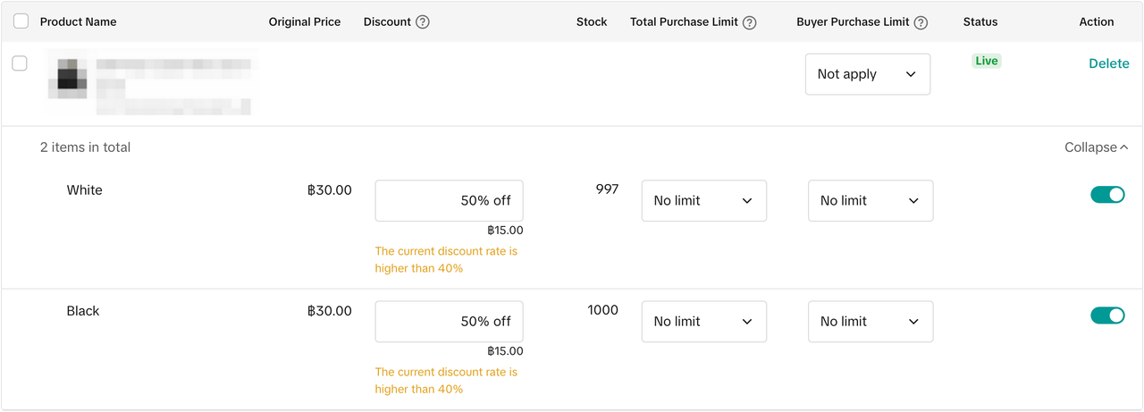 设置促销折扣门槛后,卖家无法将某商品以低于或高于某折扣标准的价格进行促销。可用折扣可能因卖家促销工具而异,大致范围为1-50%。建议在设置个人促销活动时前往“卖家中心”,查看折扣是否可用。