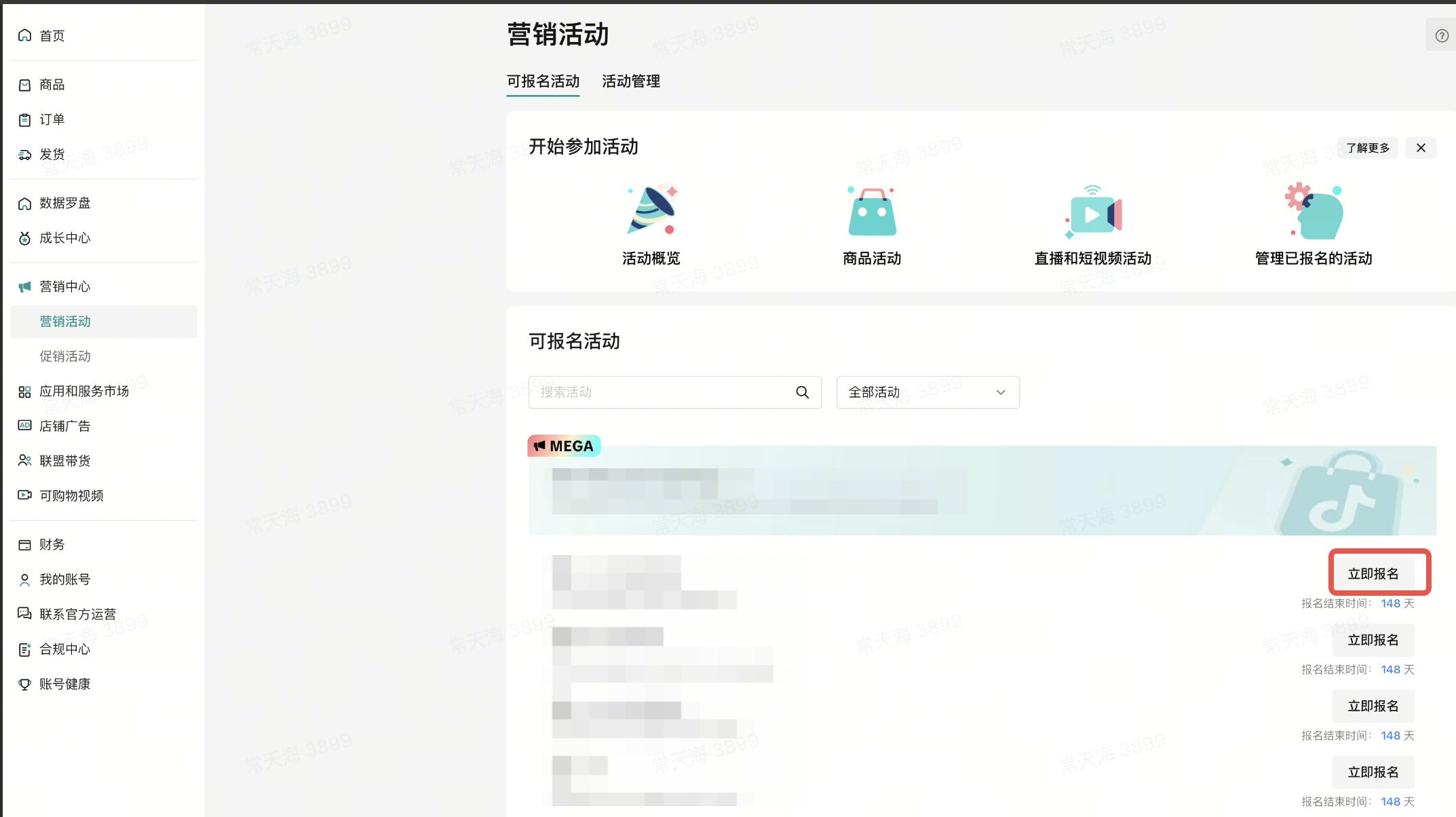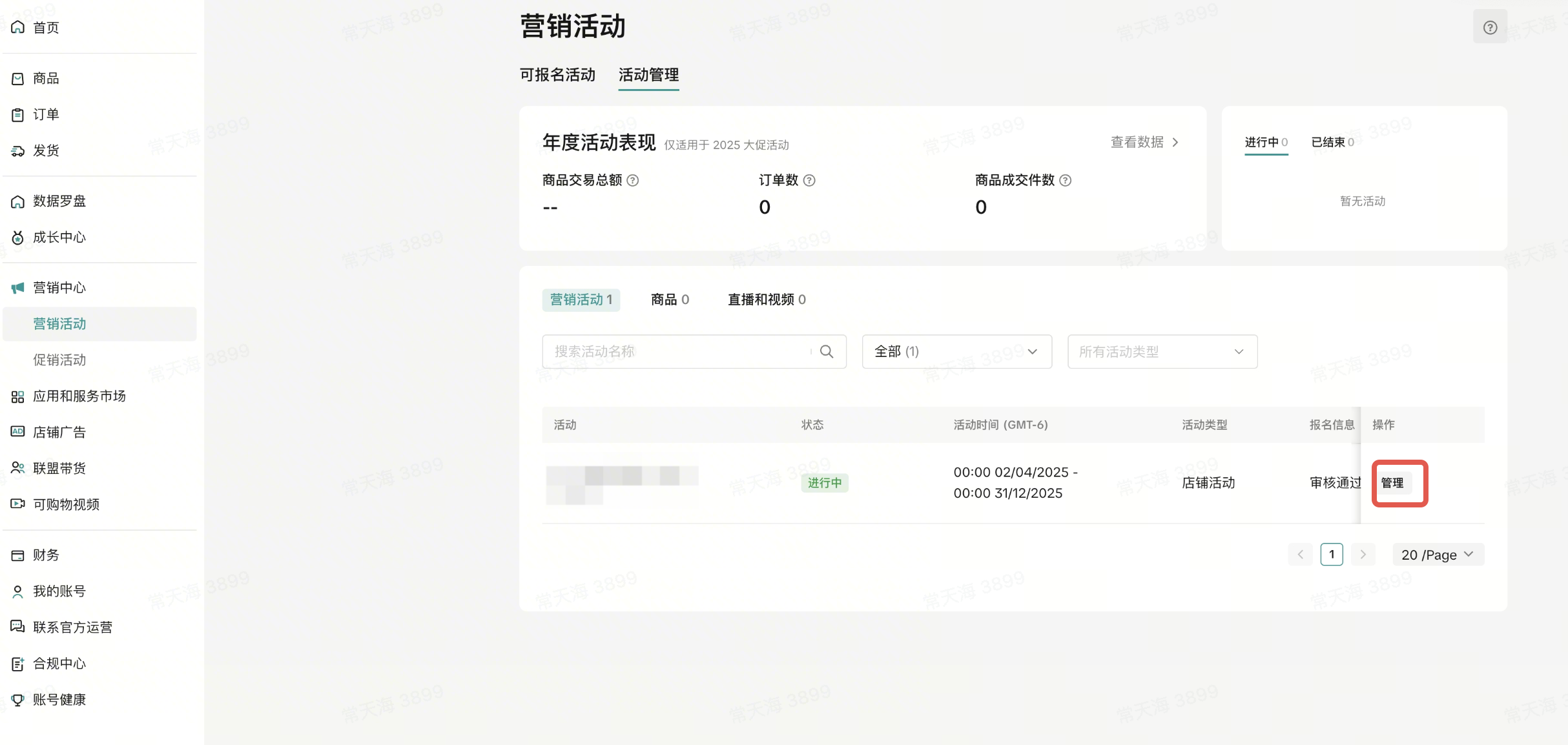进入【商家中心】>【营销中心】>【营销活动】>【活动管理】