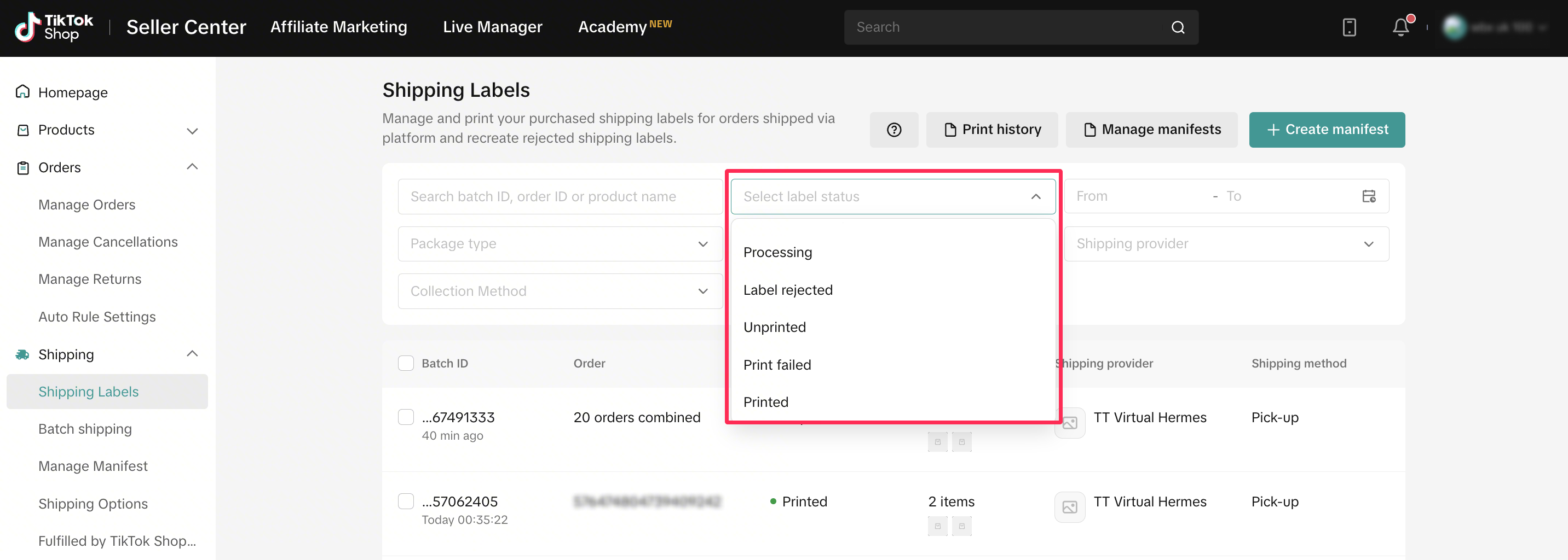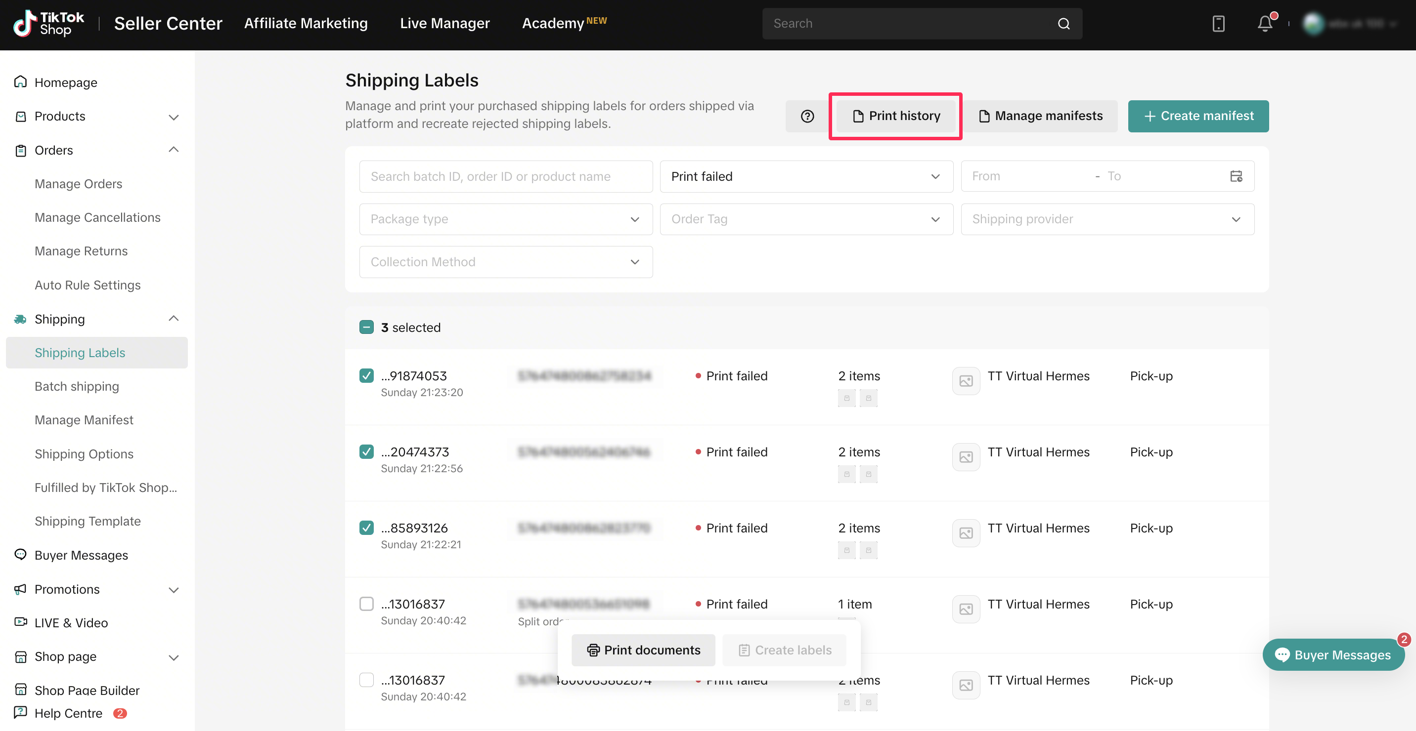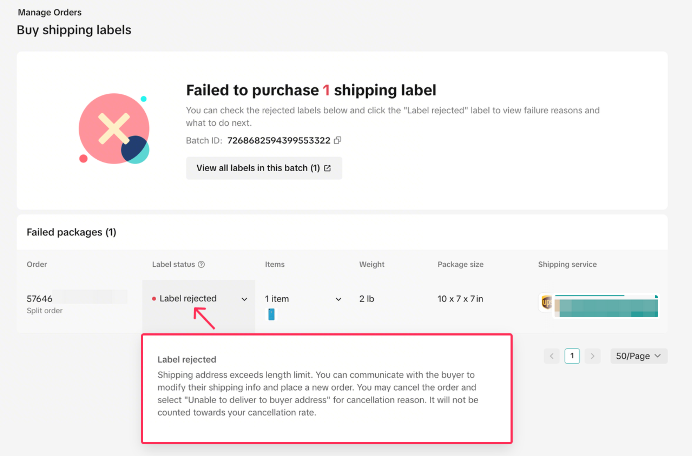生成物流面单时,TikTok Shop须向物流商验证物流信息。如果我们收到物流商的错误代码,物流面单或被拒绝。