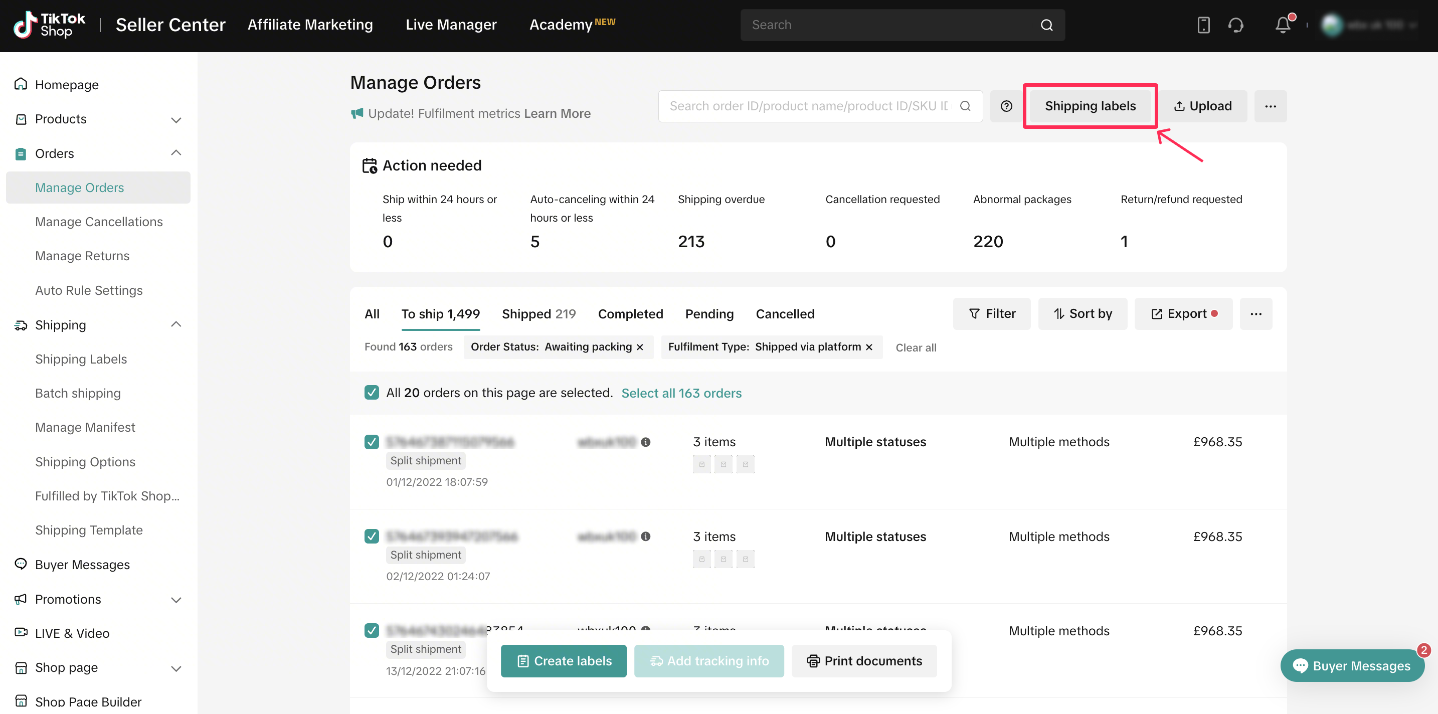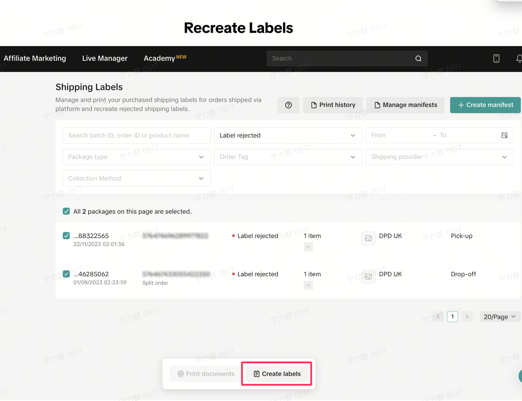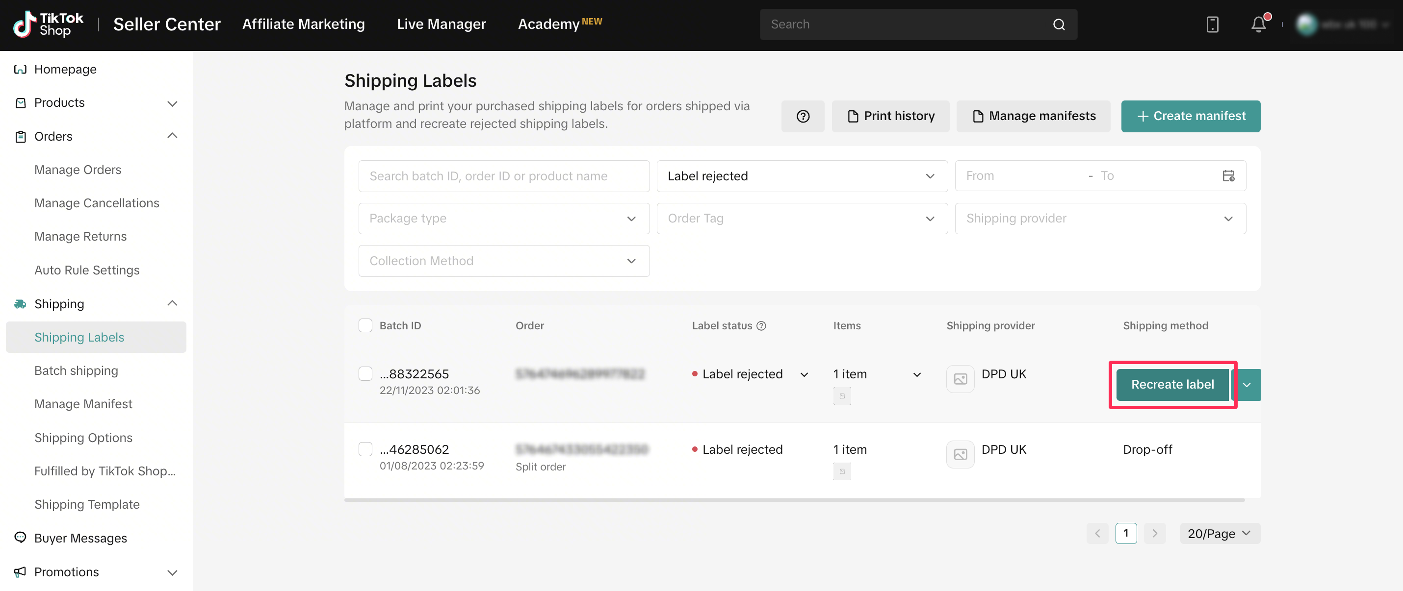 生成物流面单时,TikTok Shop须向物流商验证物流信息。如果我们收到物流商的错误代码,物流面单或被拒绝。