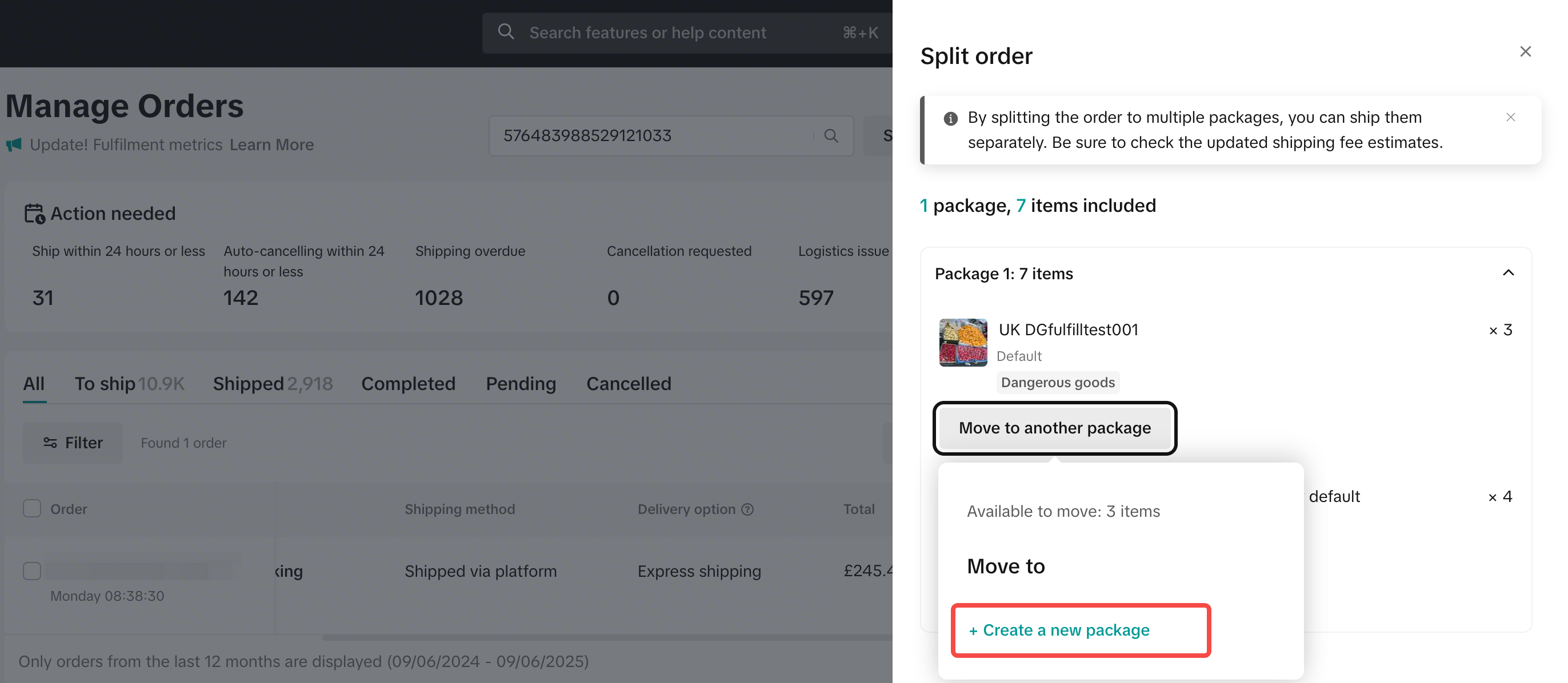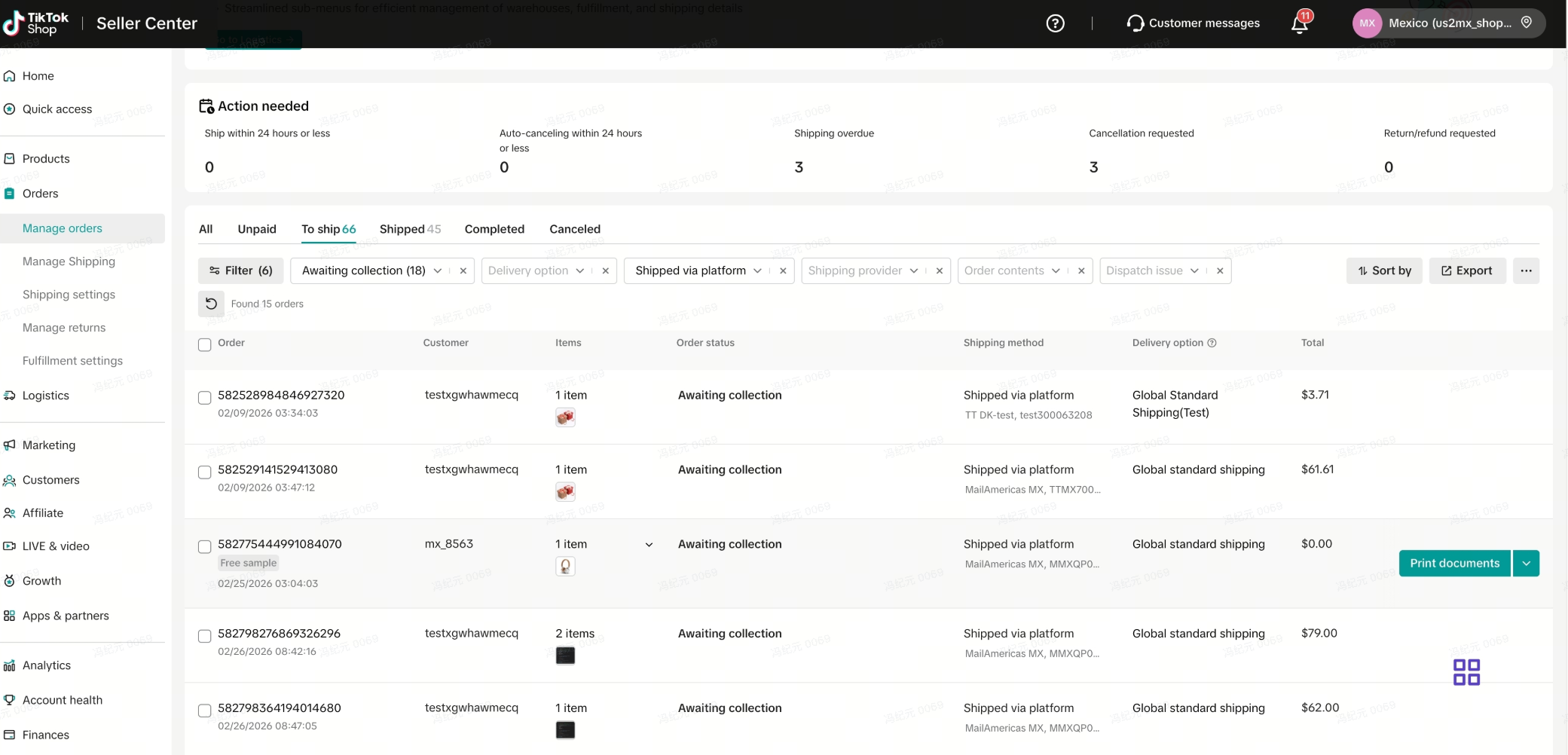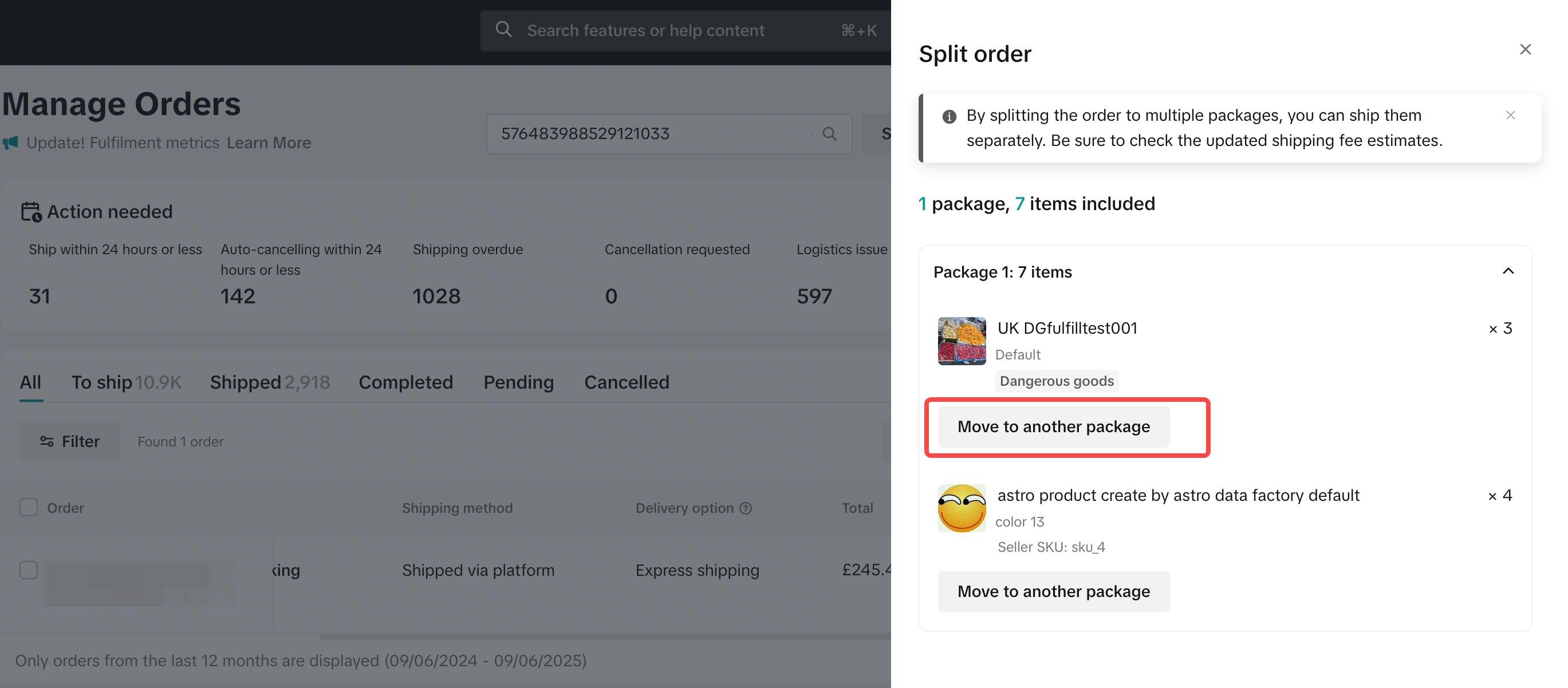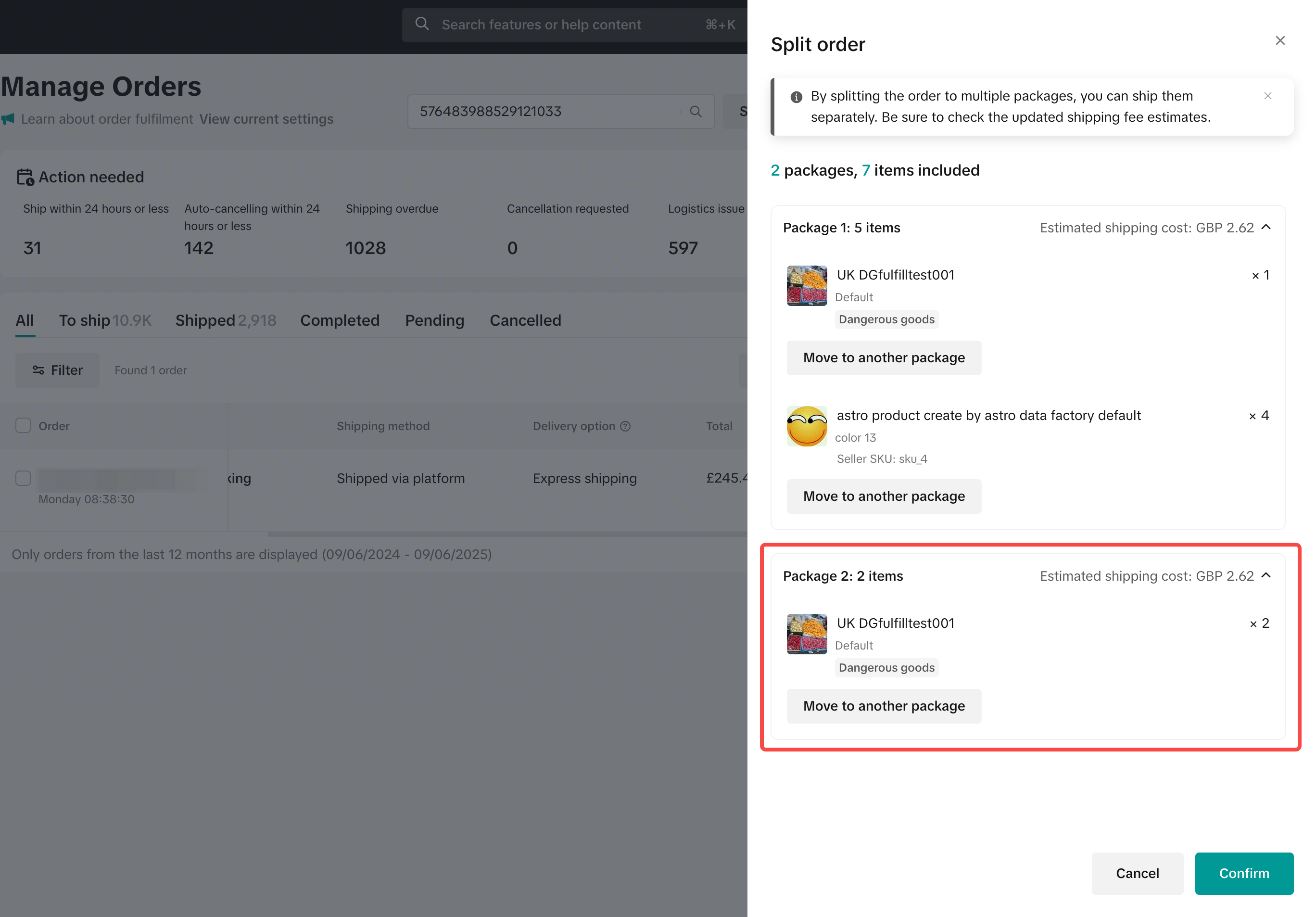 由于MX海关要求,平台基于命中类目限制的订单会要求强制拆包,订单上会增加必须拆包的标签,针对此部分的订单,商家必须拆包后才能发货选择想要进行拆包的订单。