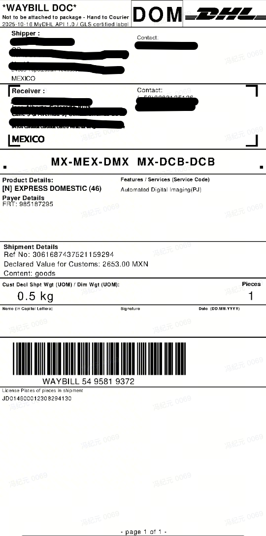 同一容器(纸箱/Gaylord/袋子)内仅可放置发往墨西哥的包裹,禁止混装其他业务的包裹。
