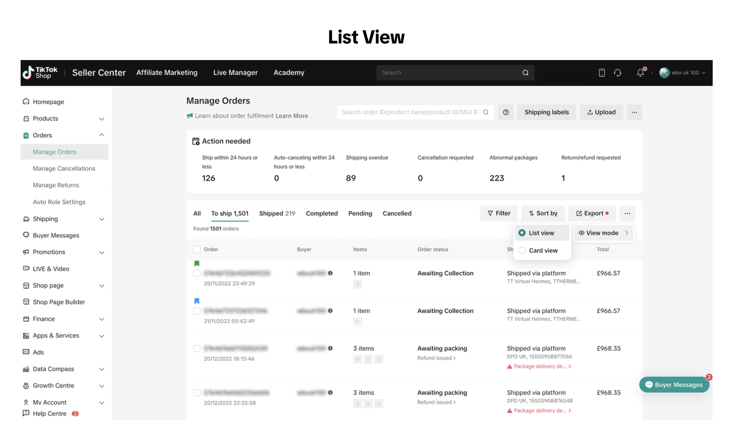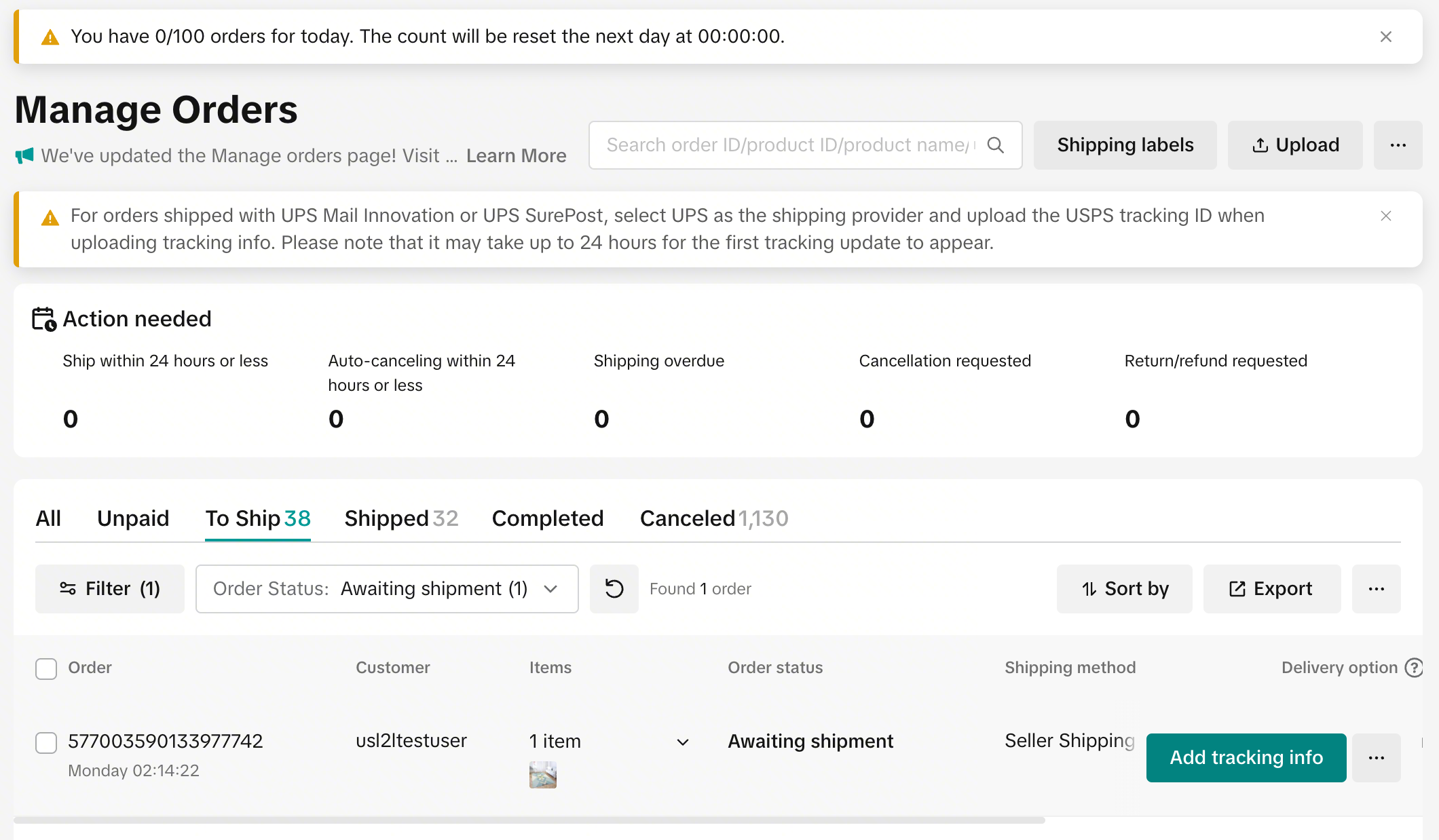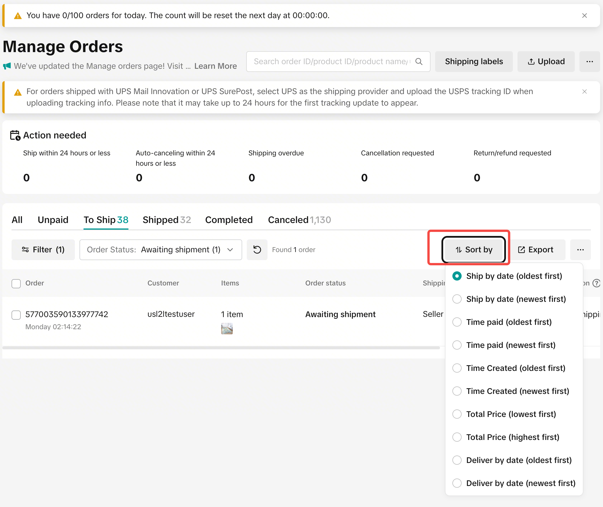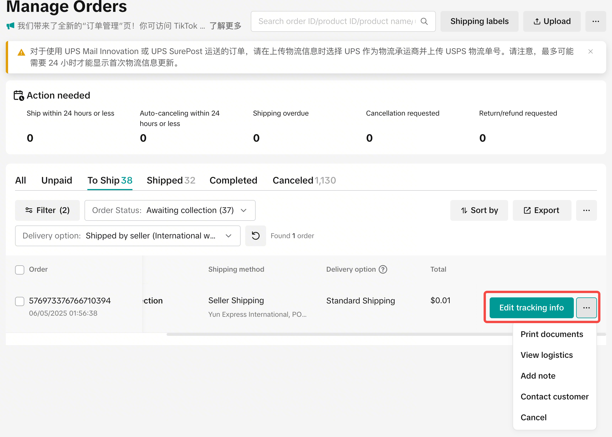 平台已优化“管理订单”页面的UI(用户界面)设计,新增了一个待处理标签页,可以提醒商家注意不要忽略任何关键订单。该标签页还突出显示了订单取消申请及退货/退款申请,让商家充分了解订单状况。