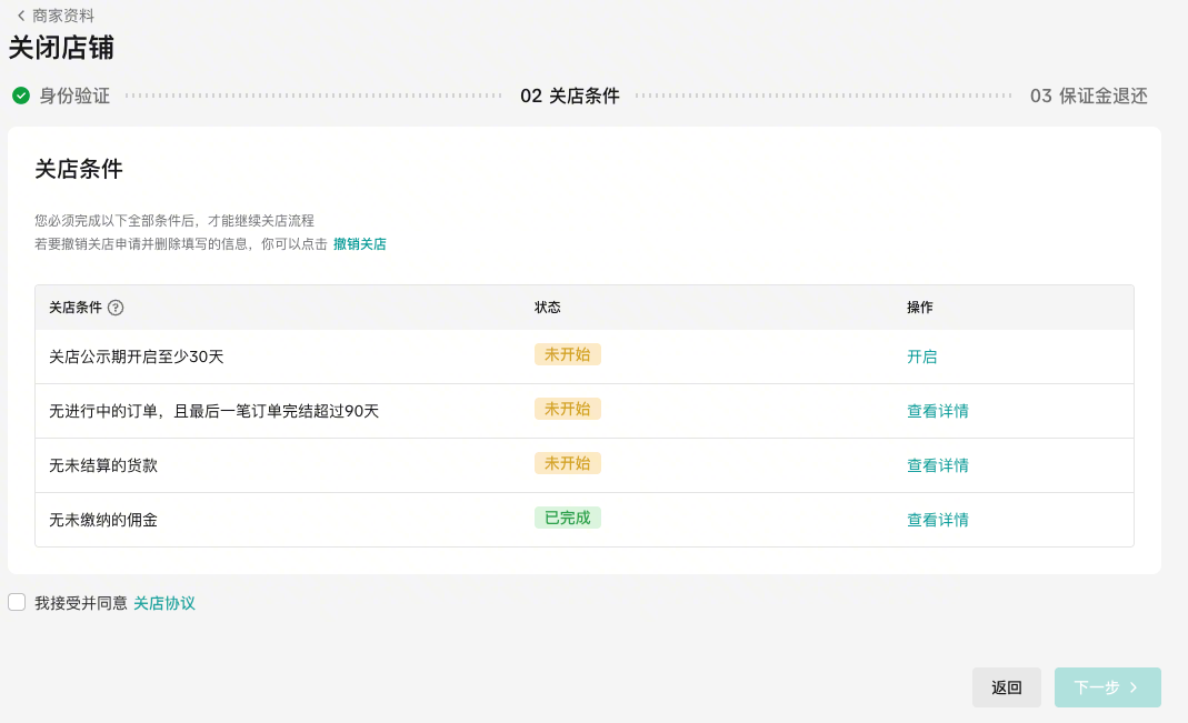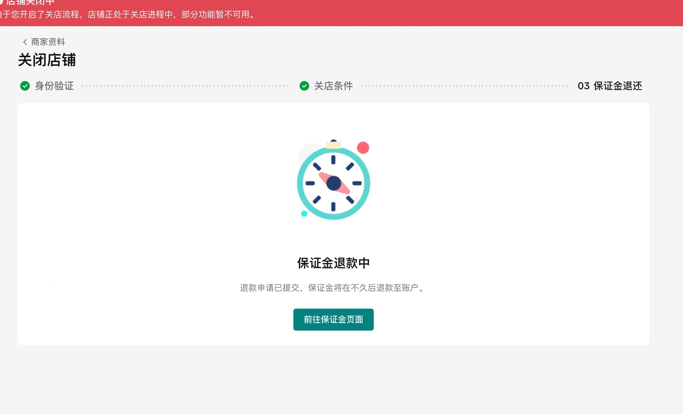 3.1 商家主动关闭店铺和店铺保证金退还条件