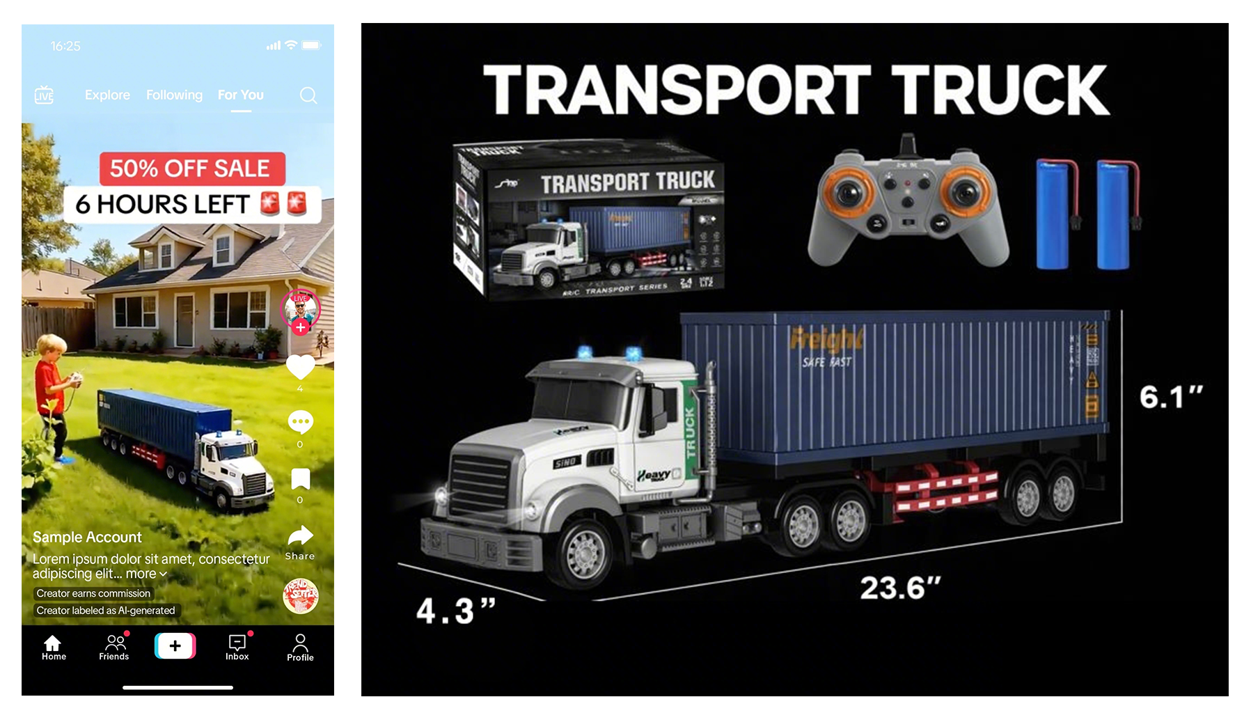 ❌深度伪造:对明星、医疗专业人士、政治人物或公众人物的视频进行剪辑或篡改,或将某人的面部或身体替换为他人形象的内容。深度伪造通常用于制作逼真但虚假的视频或图片,这在TikTok Shop是被严格禁止的。