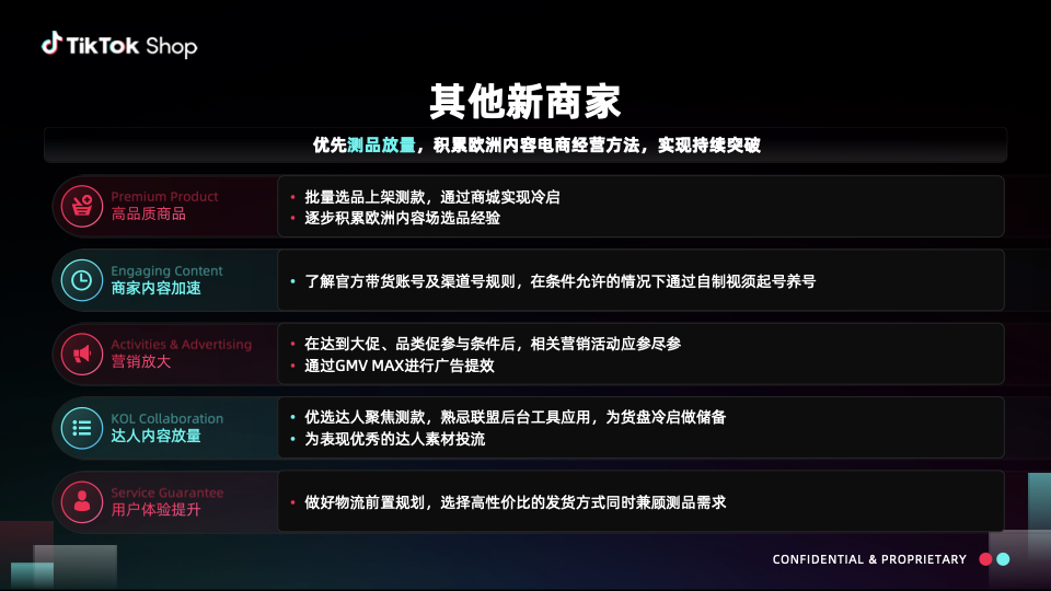 经营导向:商城经营是做好TikTok Shop的第一步,可以帮助商家快速冷启和测品,以此为基础能更好地通过内容和营销进一步扩大生意规模
