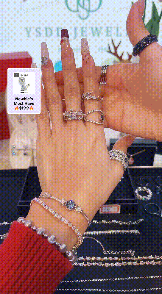 | 互动服务型 | 分型描述: – 针对所有直播间商品明码标价,在线试戴、拆封直播间用户实时咨询的产品(如盲盒拆盒展示、卡牌拆封等)或在线打包, 直播间内实时销售互动模式 定义说明: – 主播:单人出镜,或不露脸直播 – 镜头:主播半身出镜 (含陈设桌后/人物上半身) 或无真人出镜(或仅展示手) – 布景:重点突出产品和实时互动过程,搭配与产品使用场景适配的布景即可 – 货品讲解:主播依据直播间实时互动拆解售卖商品 ![]() ![]() | – 玩具潮玩收藏品 – 珠宝首饰 – 服饰/配饰 |