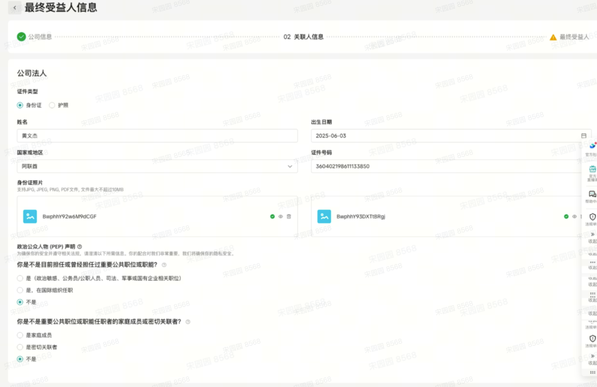 | 1. 公司信息 | 2. 关联人信息 | 3. 最终受益人信息 |