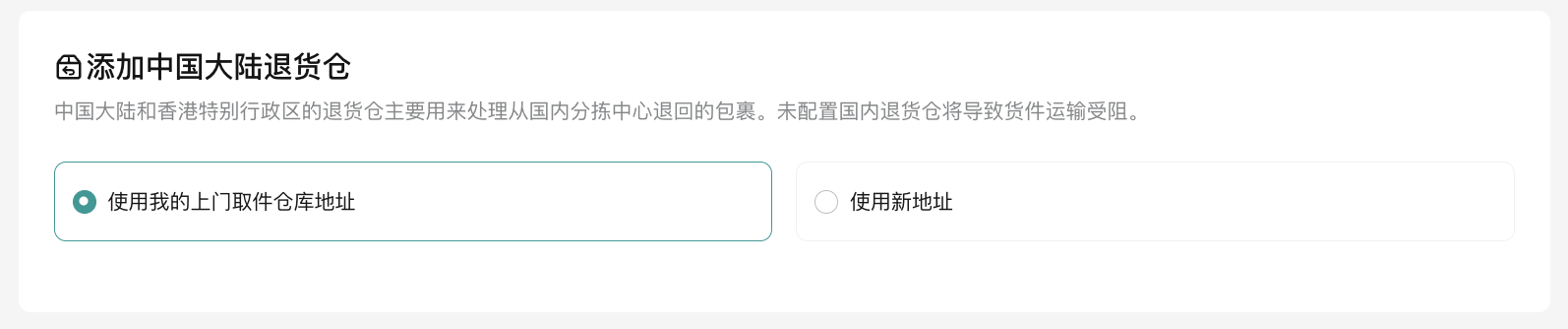 | 使用我的上门取件仓库地址 | 使用新地址 |
