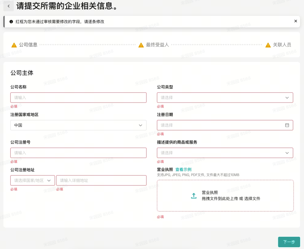| 注册国家或地区 | 参考营业执照的地址来选择 | | |