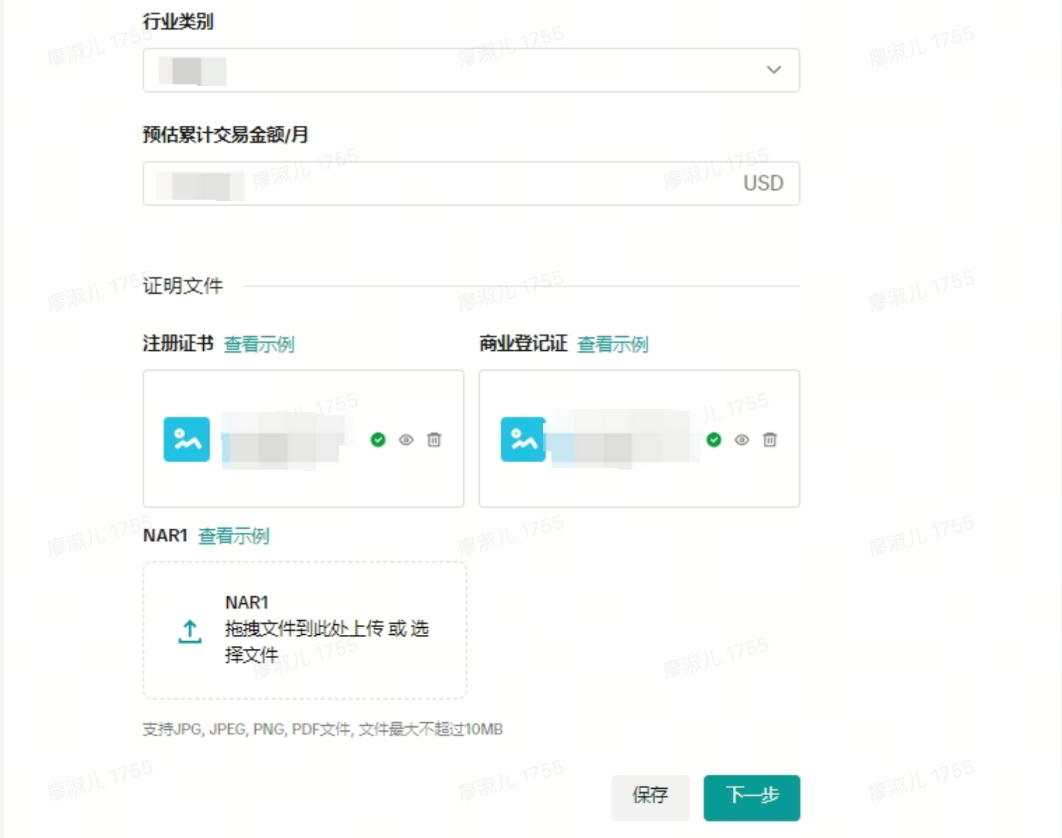 | 附件- 中国内地商家:营业执照 中国香港商家:注册证书、商业登记证、NAR1 | – 建议上传拍照原图、证件显示清晰及完整,图片不存在修图、无水印、非复印件,图片可读取/打开; – 支持JPG,JPEG,PNG,PDF文件,文件最大不超过10MB | – 注册证书:《公司注册证明书CR》,商业登记证:《商业登记BR》,NAR1:《周年申报表NAR1》 – 文件示例: ![]() ![]() ![]() ![]() ![]() ![]() – 建议上传拍照原图、证件显示清晰及完整,图片不存在修图、无水印、非复印件,图片可读取/打开; – NAR1:需提交完整、最新的申报表,同时附上与其相同日期的收据; – 假如公司成立不足1年,可提供《发团成立表格NNC1》文件; ![]() ![]() – 假如NAR1或NNC1文件中无法判断最终受益人,需同时补充组织架构图(需要董事确认和签字),用于判断最终受益人; – 支持JPG,JPEG,PNG,PDF文件,文件最大不超过10MB | |