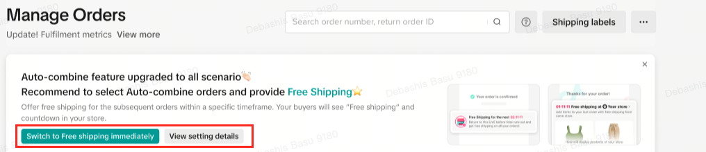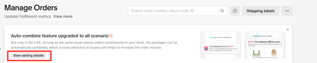 选择直播自动合并且提供包邮的商家 – 将自动开通自动合并全渠道订单功能,同时提供包邮。订单管理页面会显示相关横幅提示。