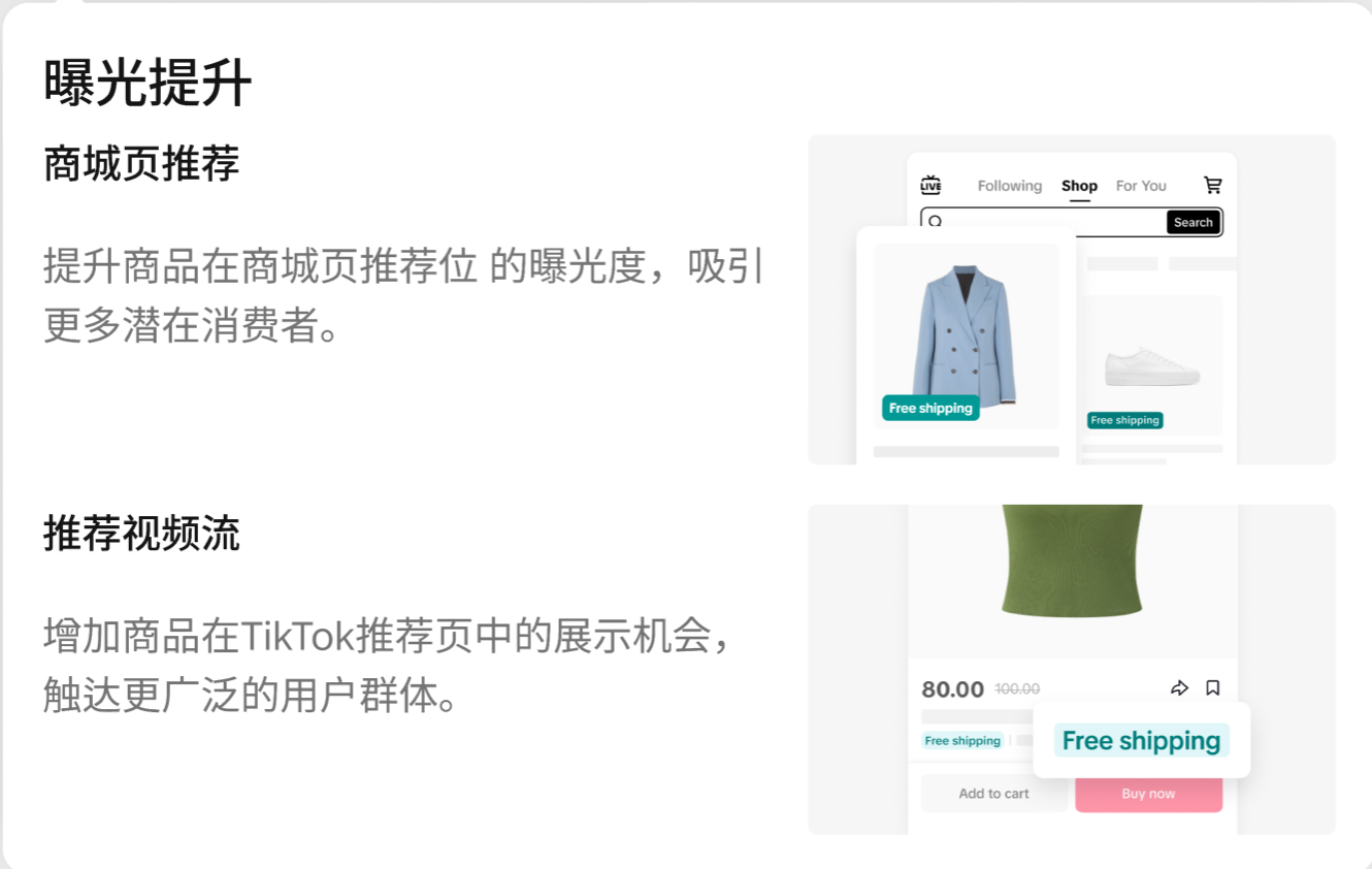 | | | 推荐视频流 增加商品在TikTok推荐页中的展示机会,触达更广泛受众并提升互动量。 | |