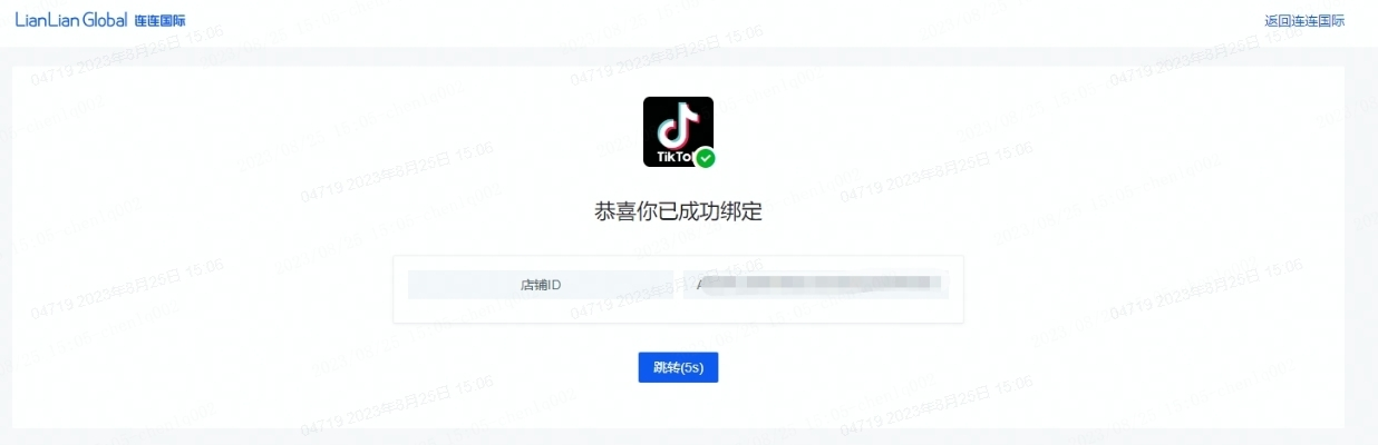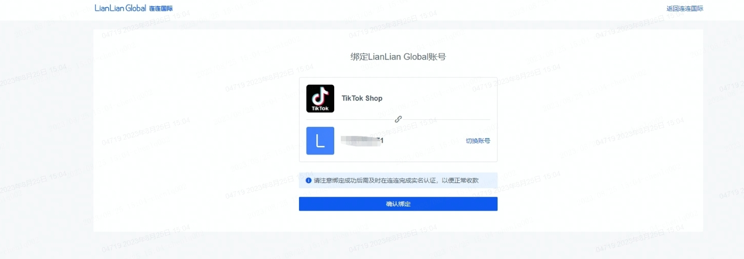 第二步:跳转至连连国际,登录连连账号后,按提示操作完成店铺绑定。