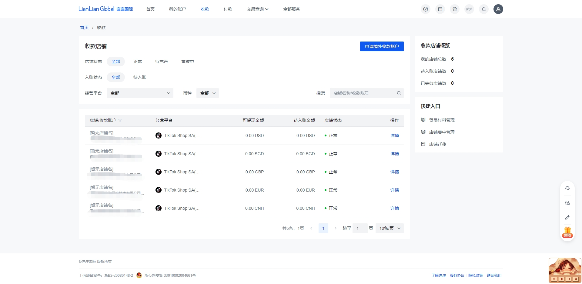 第三步:绑定完成后,可点击:链接 进入连连用户站后台-【收款】-筛选【经营平台】中查看已绑定店铺。