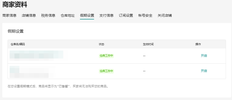 - 假期设置:在您设置假期模式后,商品将显示为“已售罄”,买家将无法购买您的商品。