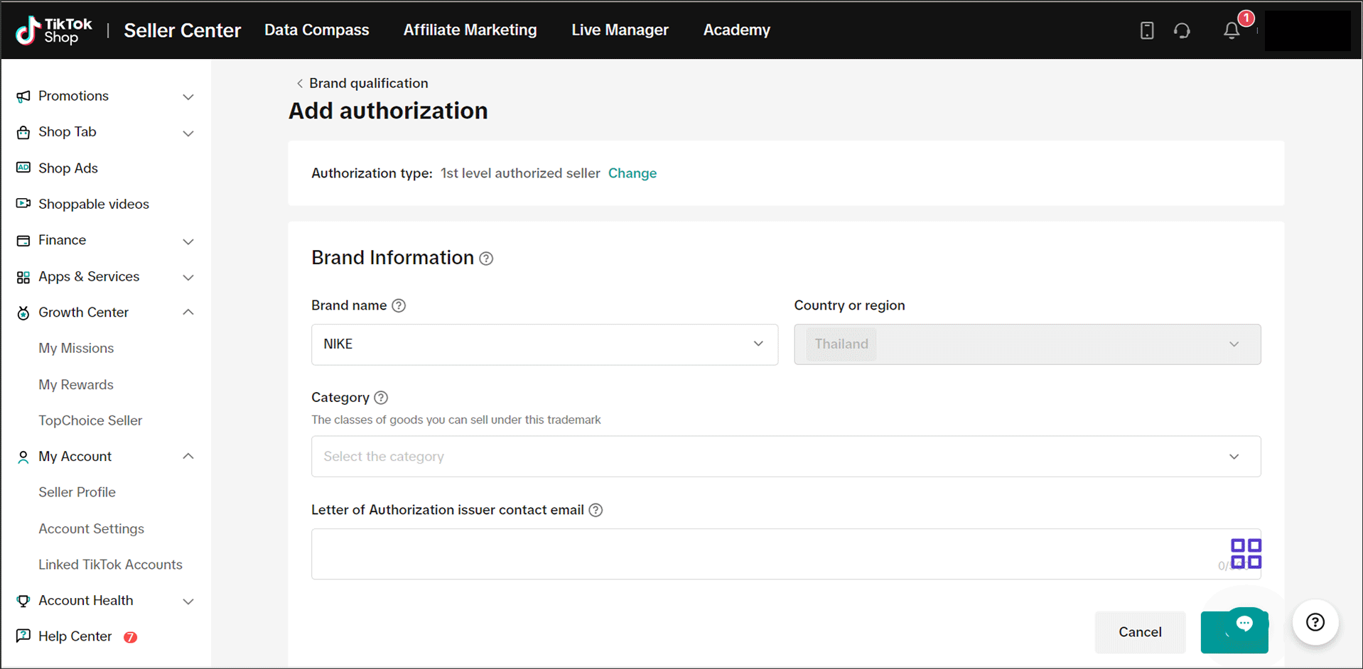 购买证明卖家由TikTok Shop自行决定。此项仅适用于选定卖家提交选定品牌的品牌资质。