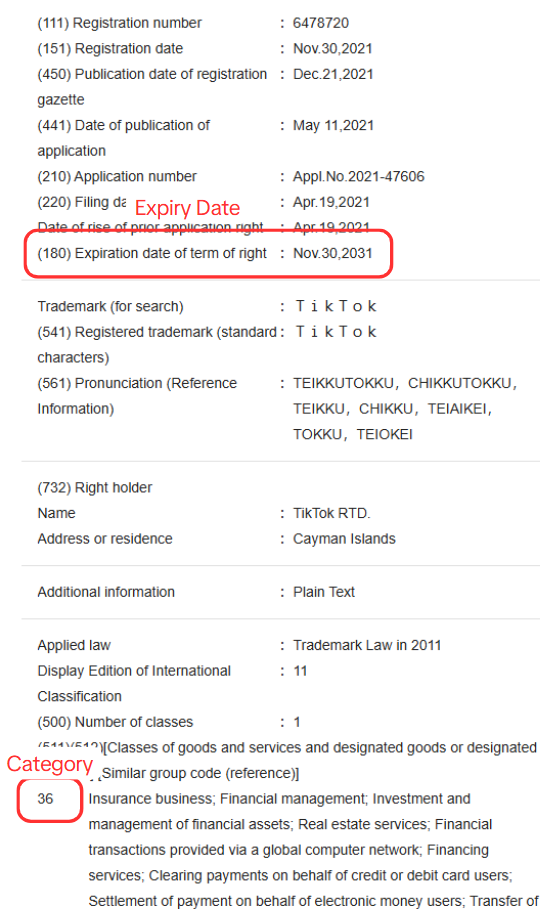 如何查看日本商标失效日期和类目?