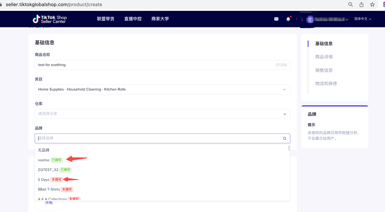 - 为什么我的品牌在品牌列表页中显示未授权?
