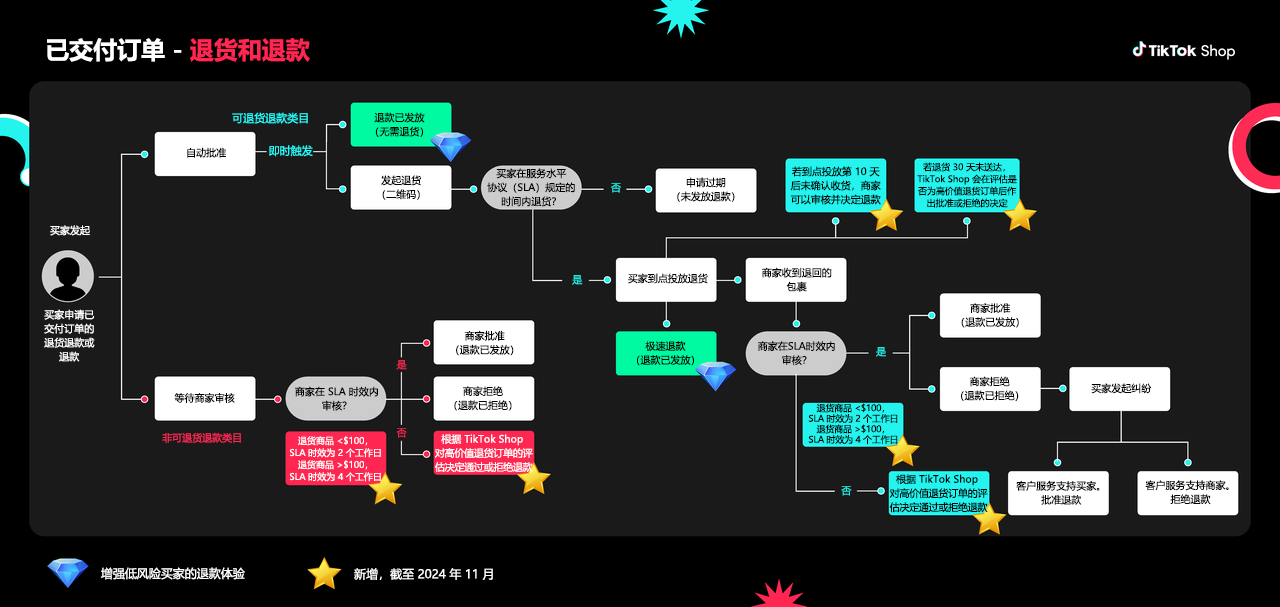 对于金额超过 100 美元的退款申请,审核周期由原本的从2个自然日延长至4个自然日。
