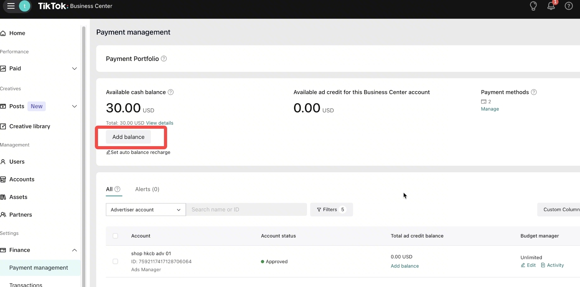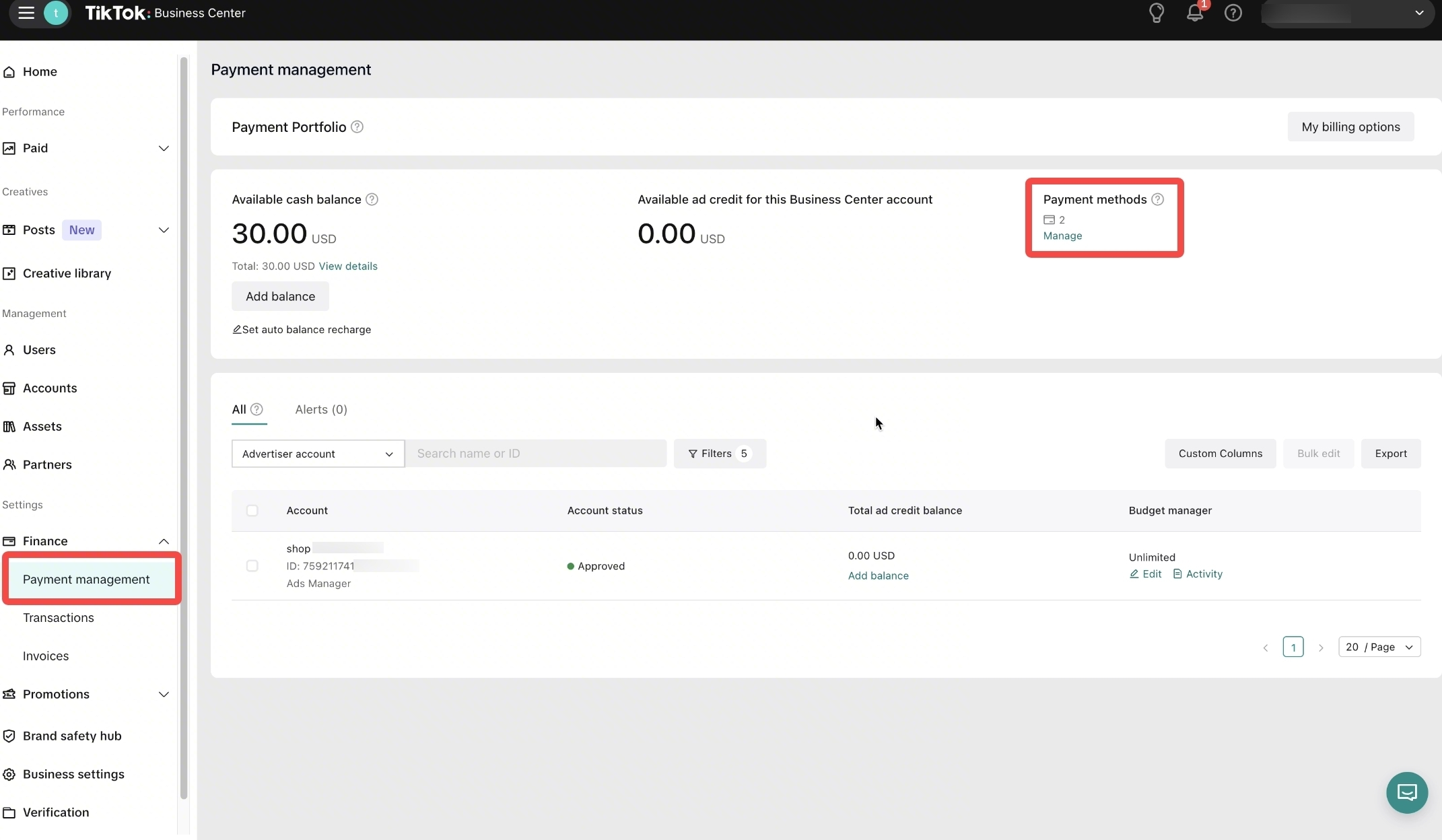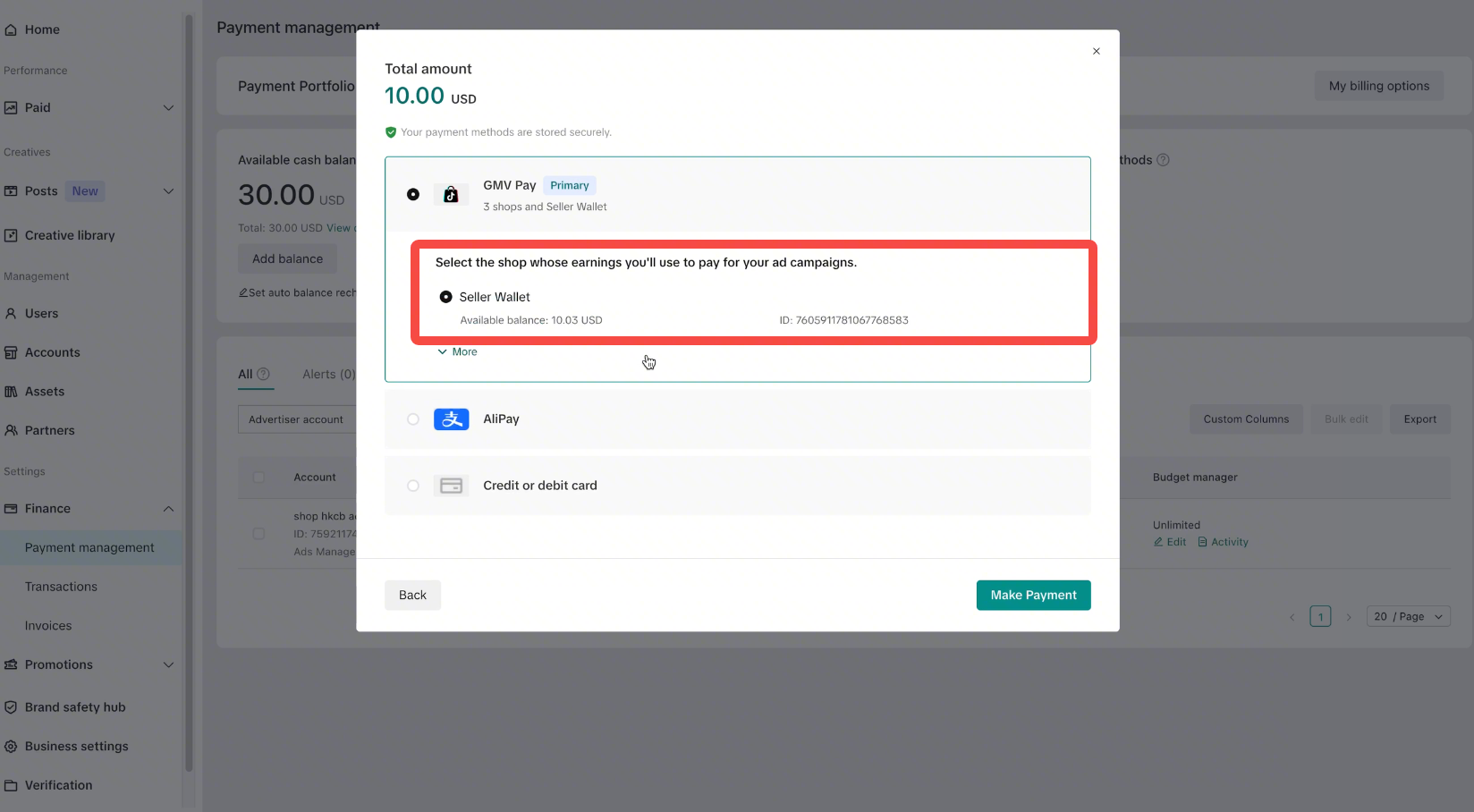 如何在 TikTok 广告管理平台设置使用商家钱包支付广告费