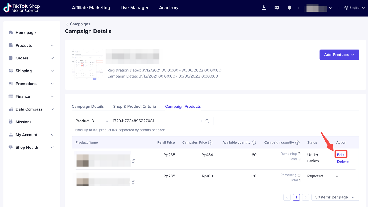 入口:Seller Center – Promotions – Campaigns – Product campaigns