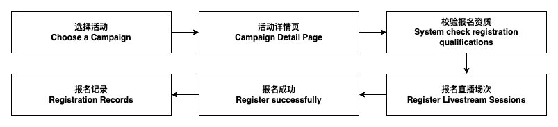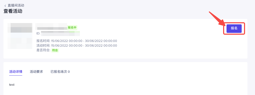 在活动列表页或活动详情页点击“注册现场直播”进入直播间场次报名流程