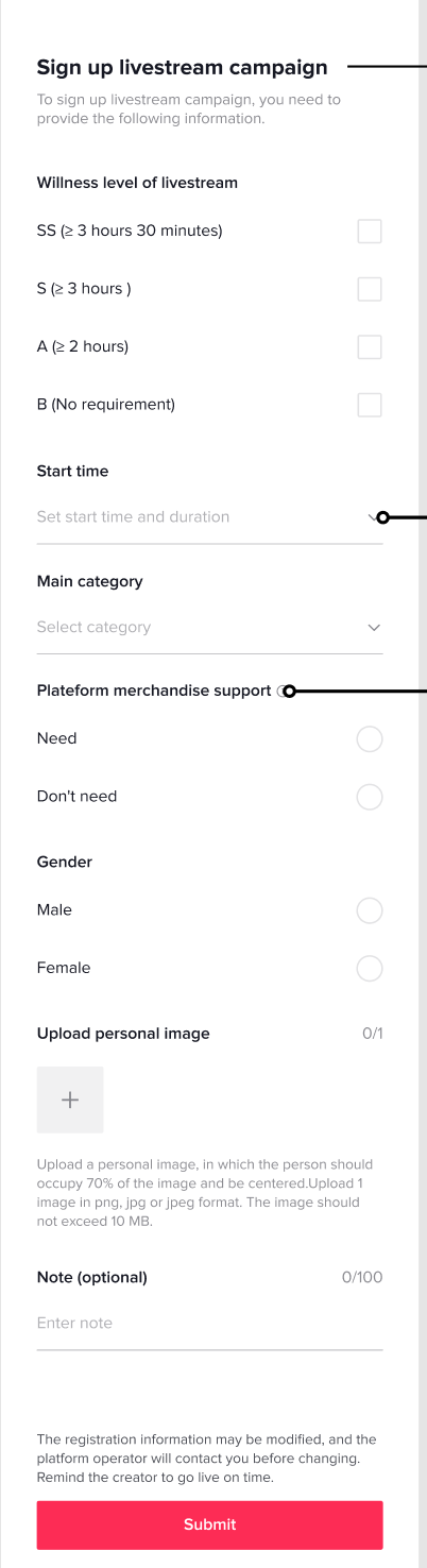 在同一活动中,商家可在商家端和达人端的报名场次总和不能超过100