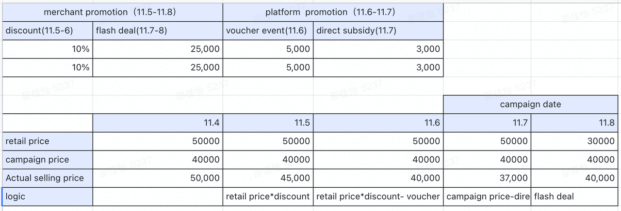 商品在campaign活动中且处在活动生效期间(campaign dates)或处在组货直播场次时段内,活动价可以和平台补贴叠加,因此可以叠加direct subsidy,补贴价格=活动价(campaign price) – 补贴金额(subsidy amount);也可以叠加平台券和包邮