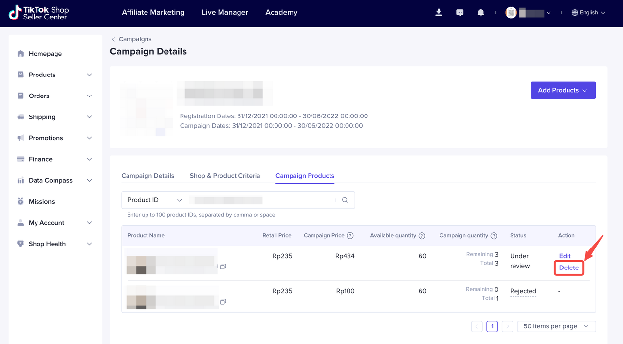 入口:Seller Center – Promotions – Campaigns – Product campaigns