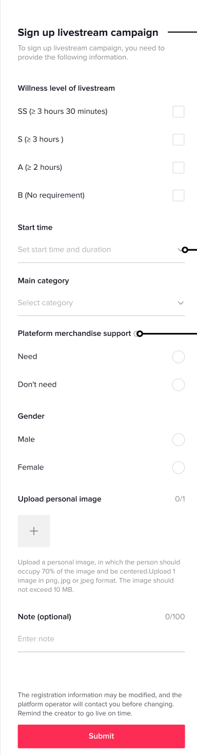 在同一活动中,商家可在商家端和达人端的报名场次总和不能超过100