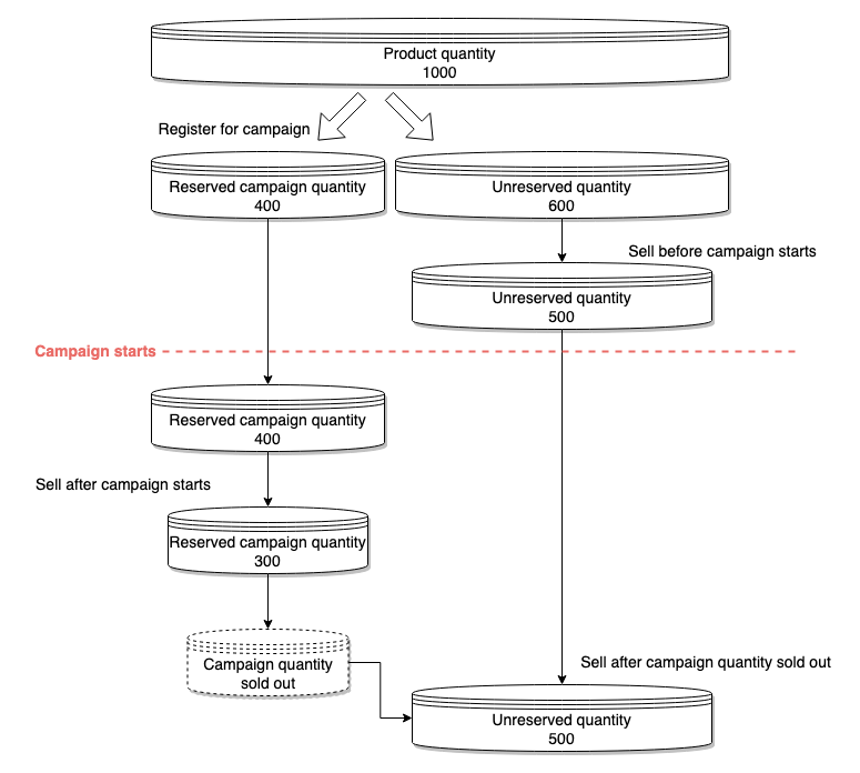 若商品提报活动库存,则原库存被划分为活动库存和未预定库存,且在提报的时候即预占活动库存。