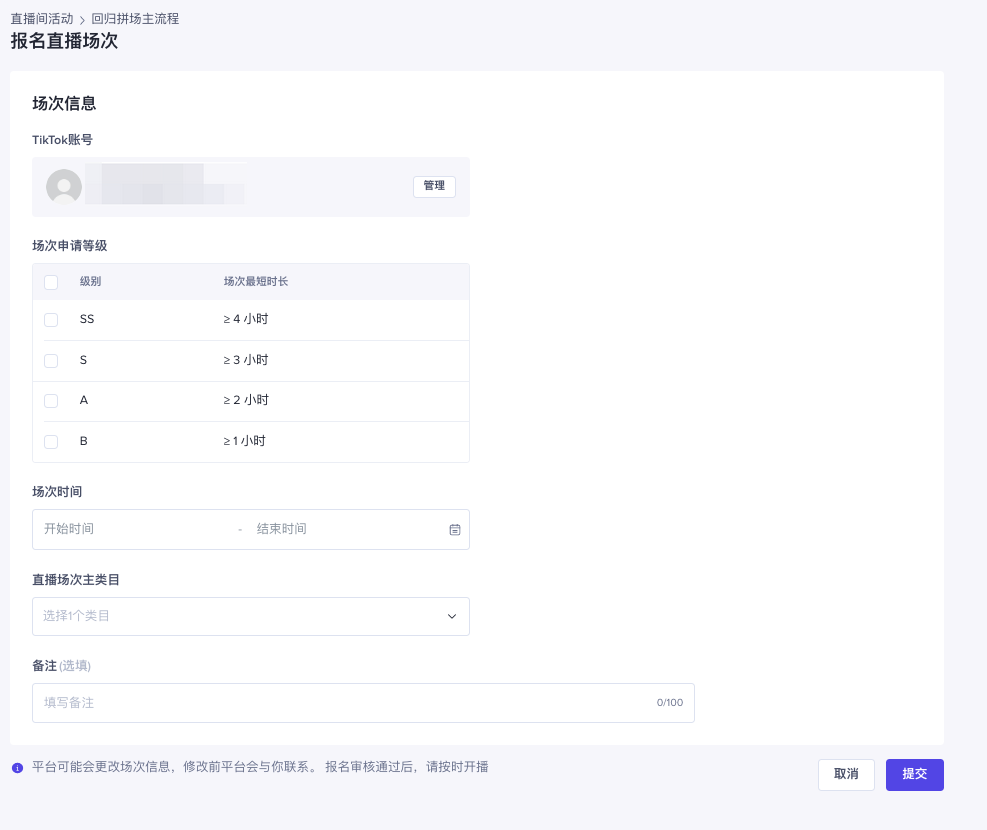 报名直播间等级