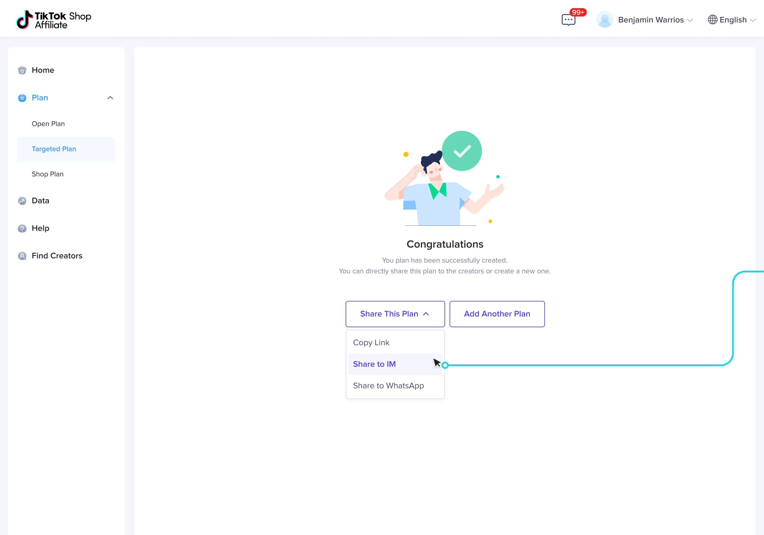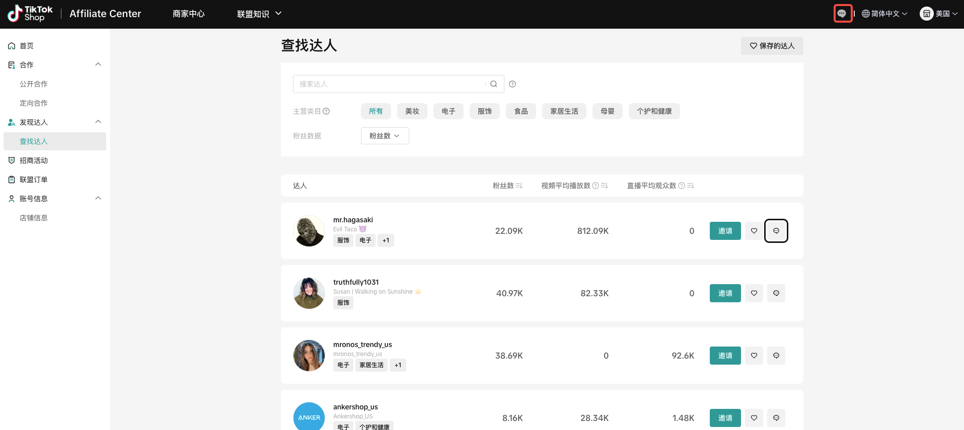 此功能允许卖家直接与 TikTok Shop 联盟中心的达人沟通,这样您就不再需要依靠Email或 WhatsApp 来联系他们。创建更加无缝的沟通流程,增强卖家和创作者之间的协作。