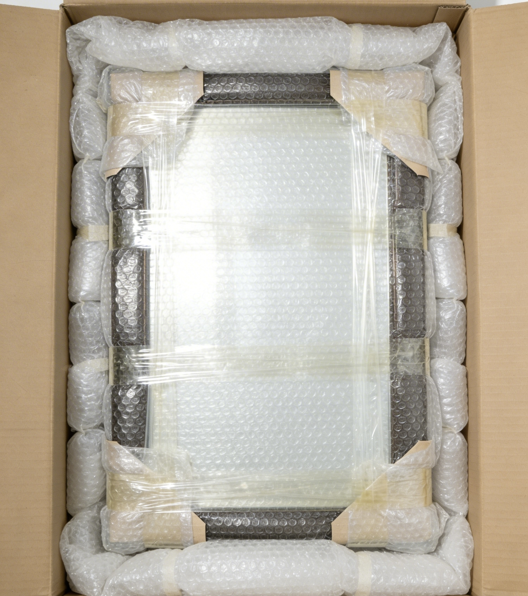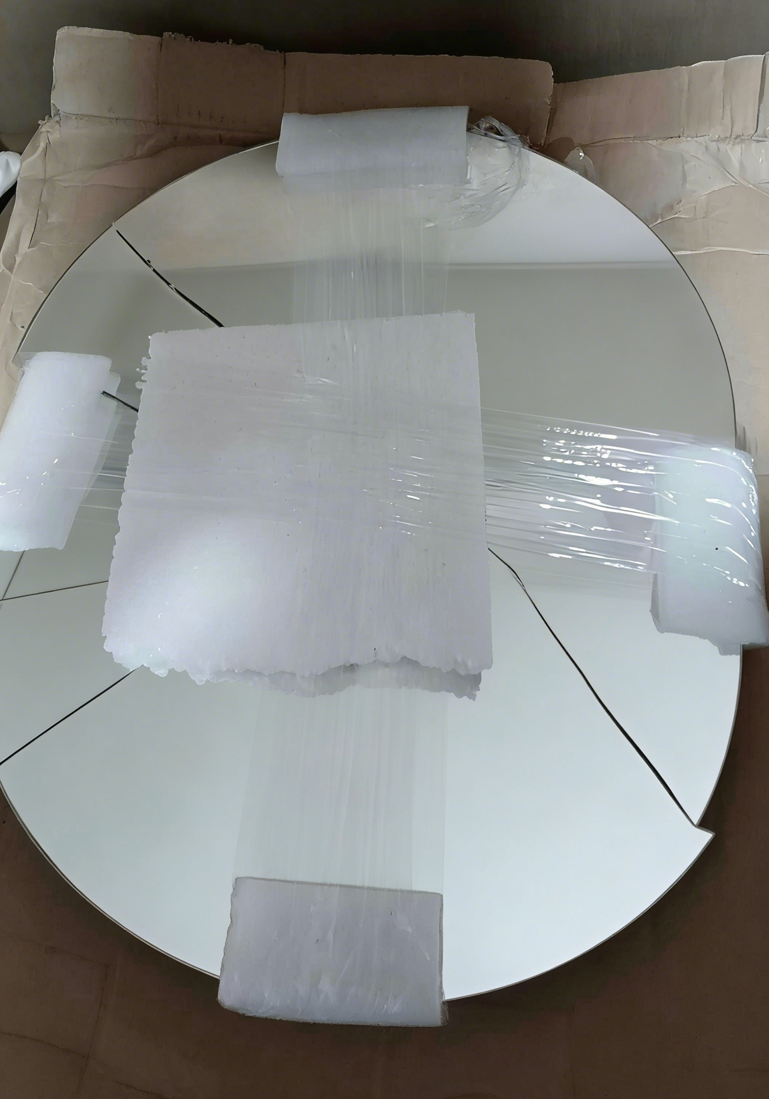 | 镜子 | 1. 用气泡膜或珍珠棉完整包裹整个商品2层以上,边角处额外多缠 1-2 层气泡膜,或用泡沫包裹镜子四角,并用胶带固定避免移位; 2. 根据镜子的尺寸,选择大小合适且有抗压材质的硬纸箱; 3. 在纸箱底部平铺一层较厚的珍珠棉/泡沫板,将包好气泡膜的镜子放入纸箱中央;镜子与纸箱的四周缝隙,用气枕、气泡膜、泡沫等减震材料进行填充,确保镜子在箱内无法晃动,最后在镜子上方再铺一层珍珠棉/泡沫板。 | ![]() ![]() |