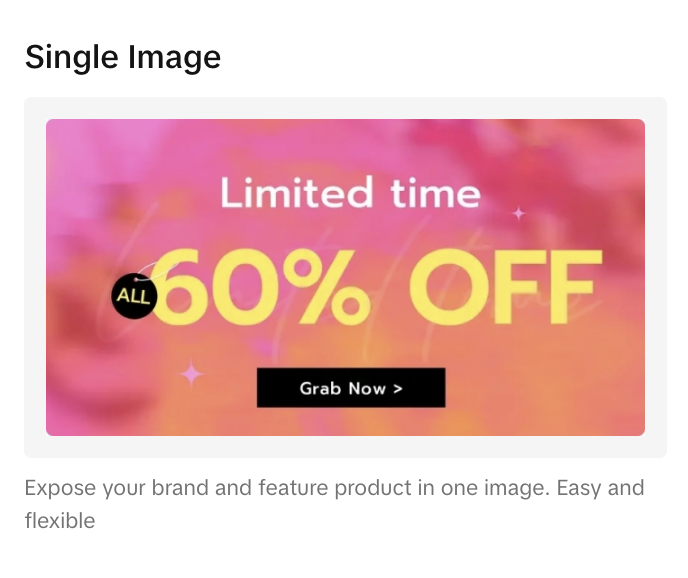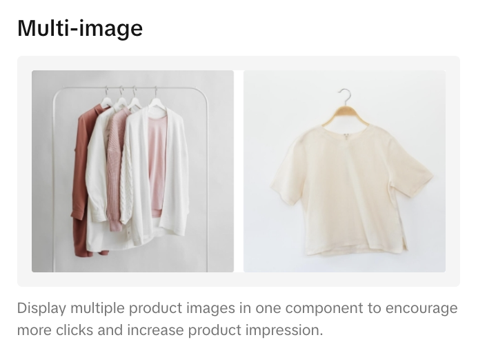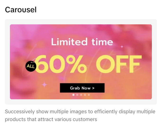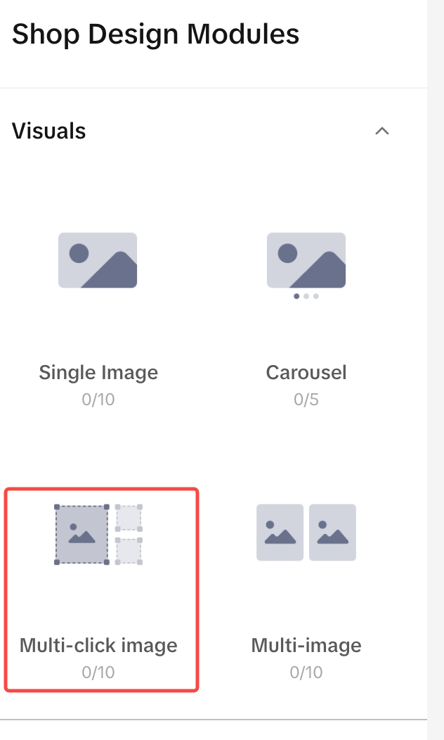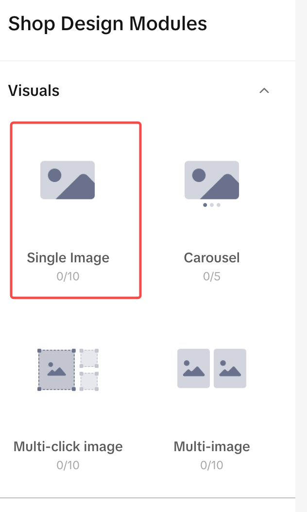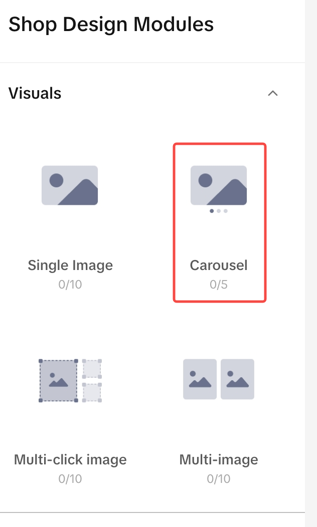 | 至少2个视觉模块 | Single image, Carousel, Multi-click image, Multi-image |