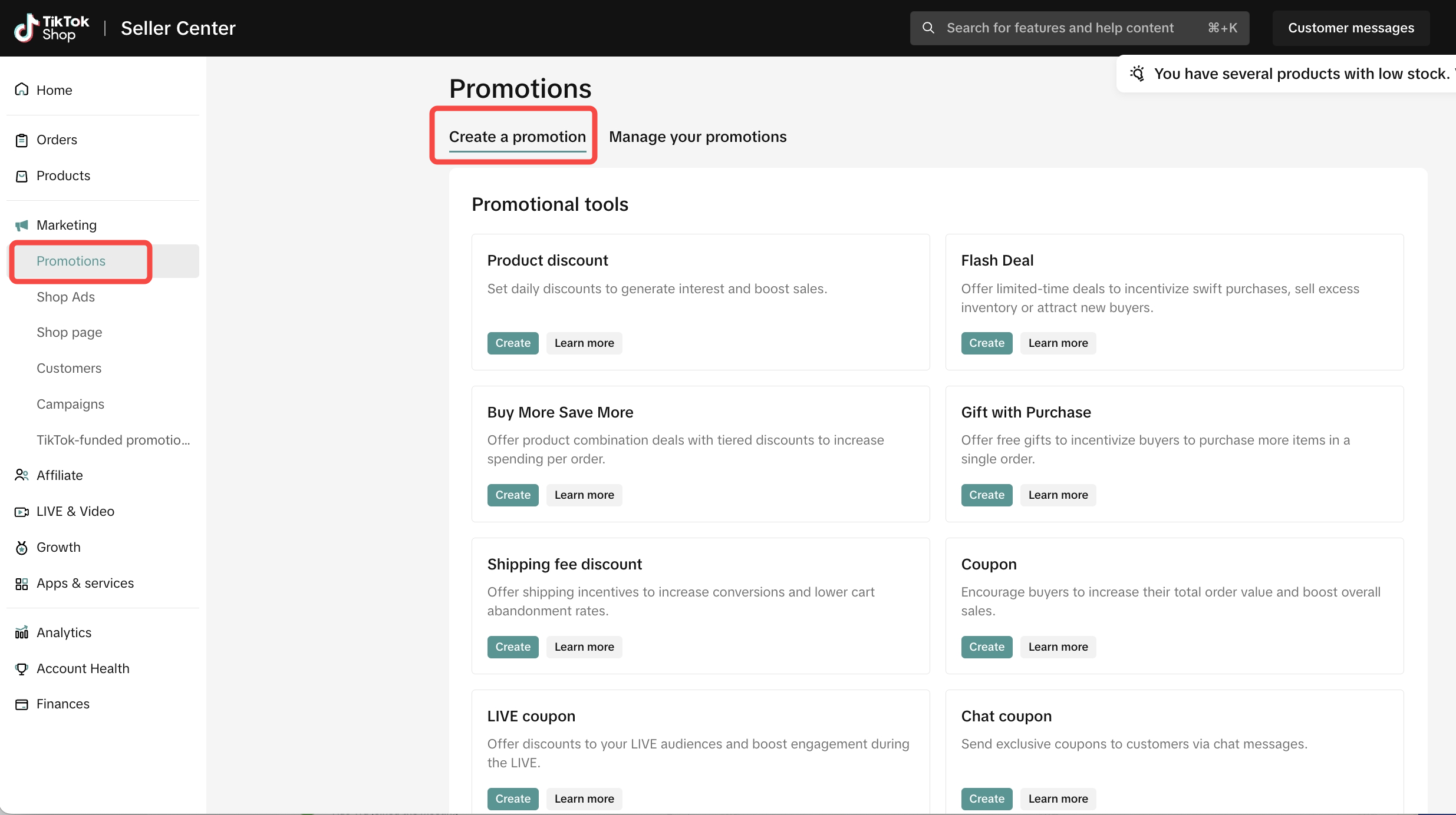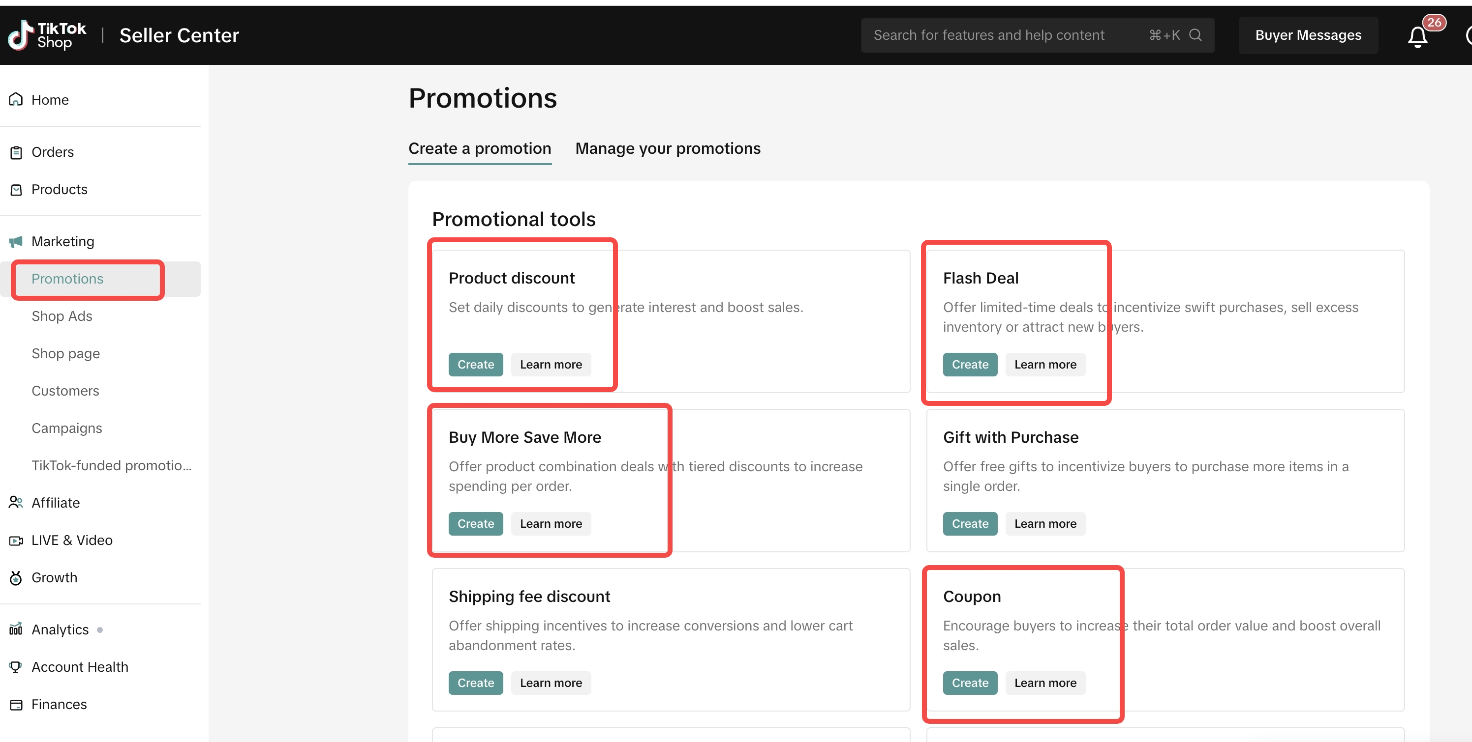 | 促销 这些模块反映了已经上线并在卖家中心预先配置的促销活动。 | Coupon | TikTok优惠券&商店优惠券 | ![]() ![]() | ![]() ![]() |