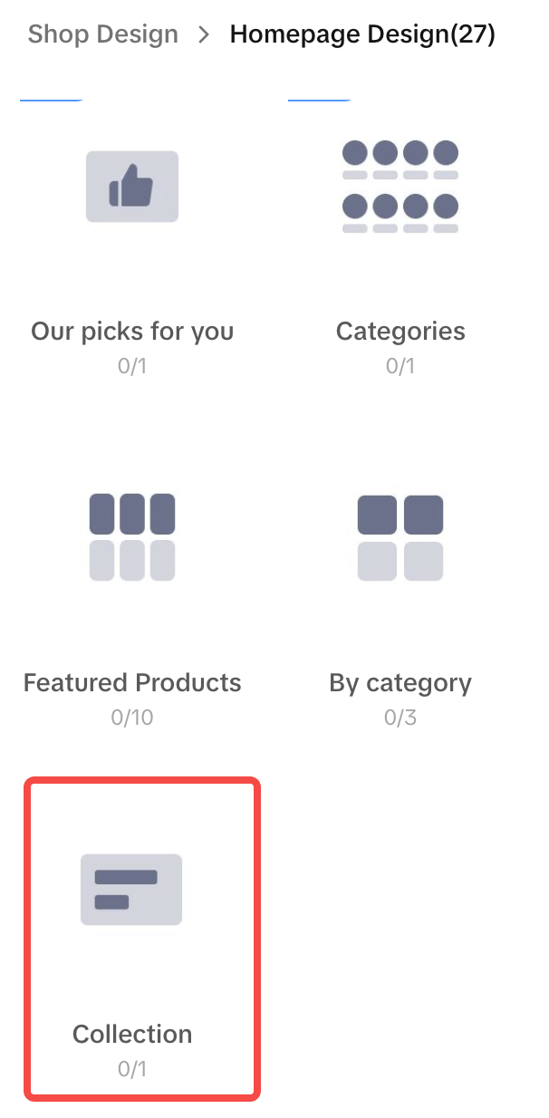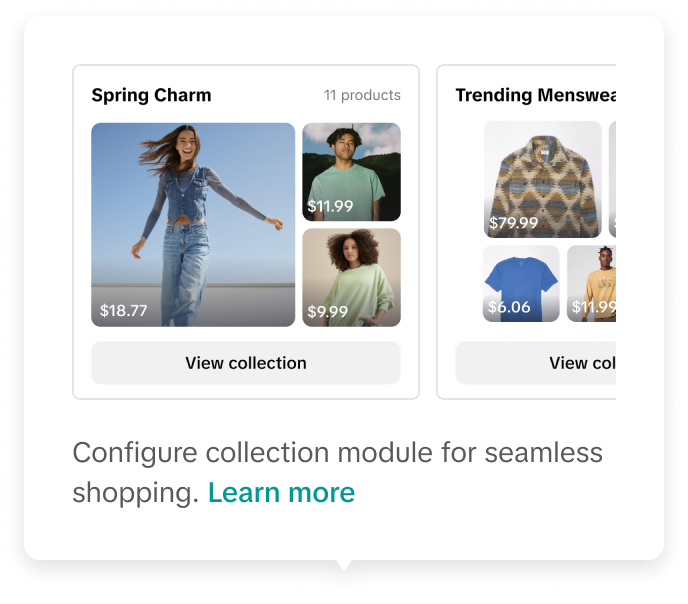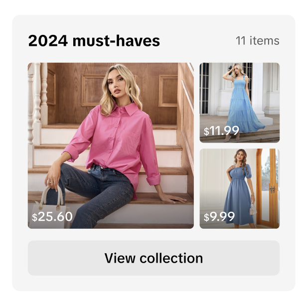 突出展示新品、特别或独特的商品组合,以帮助客户找到他们想要的商品。请在您的店铺主页中包含至少 2 个收藏(商品集合)。