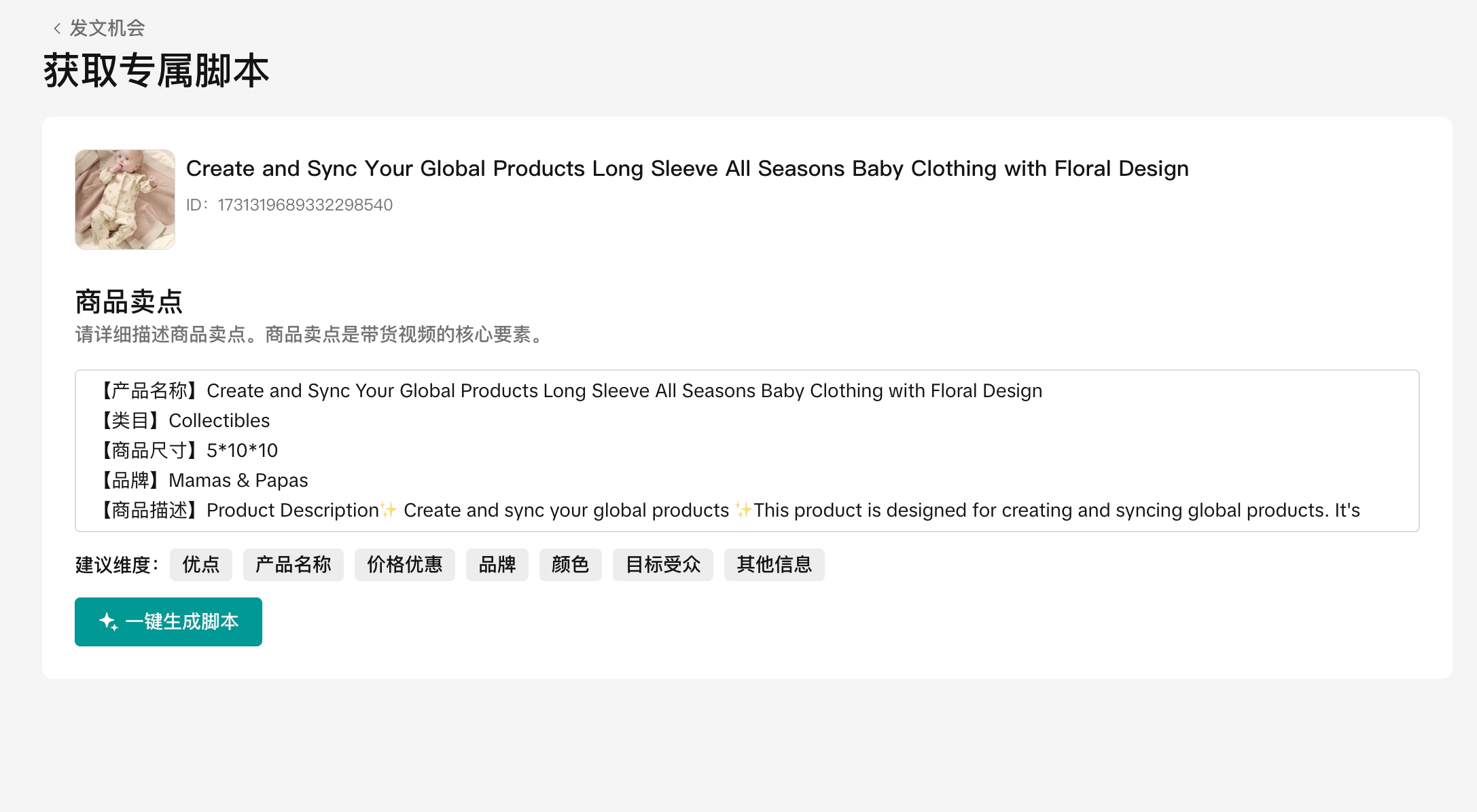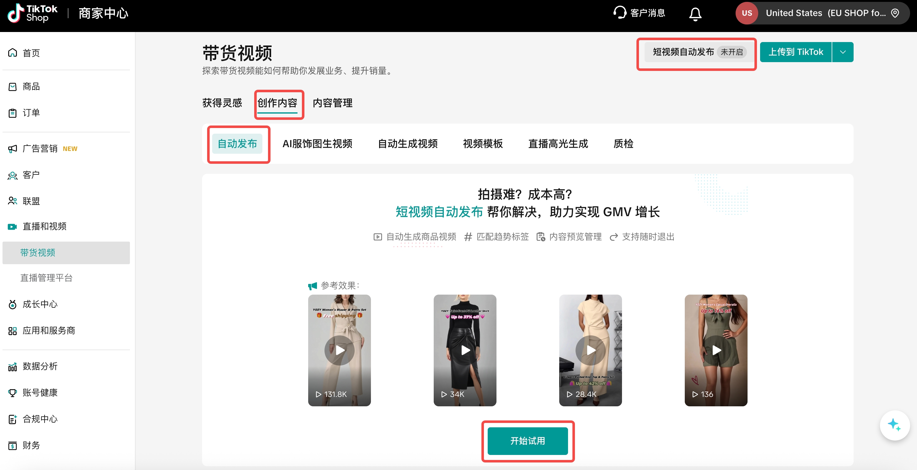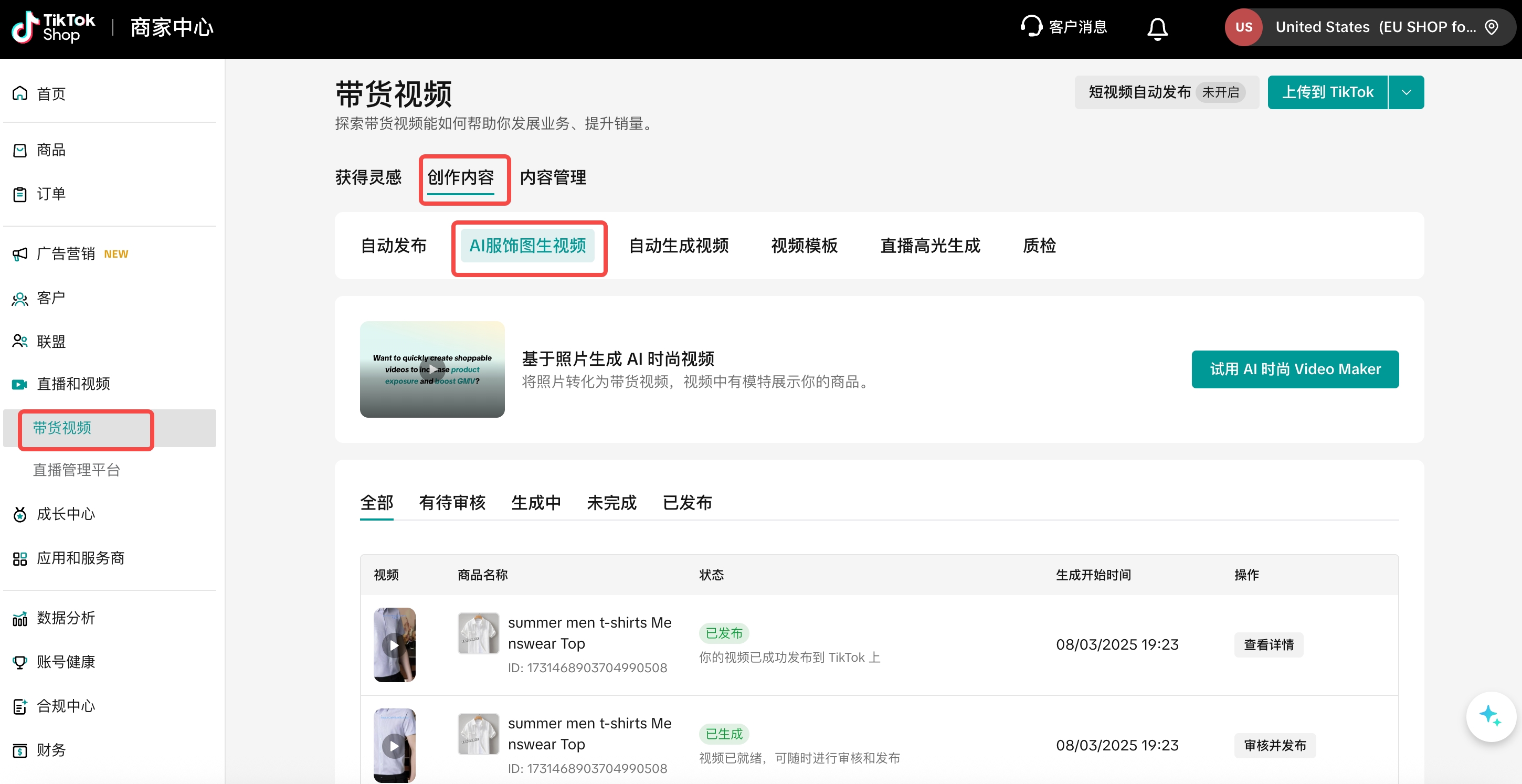 - 入口:https://seller.us.tiktokshopglobalselling.com/shoppable-videos/create-content/auto-generate?from=tab