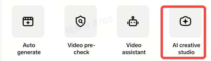 入口1:Tiktok APP-TTS创作者中心 -> 视频 -> AI creative studio