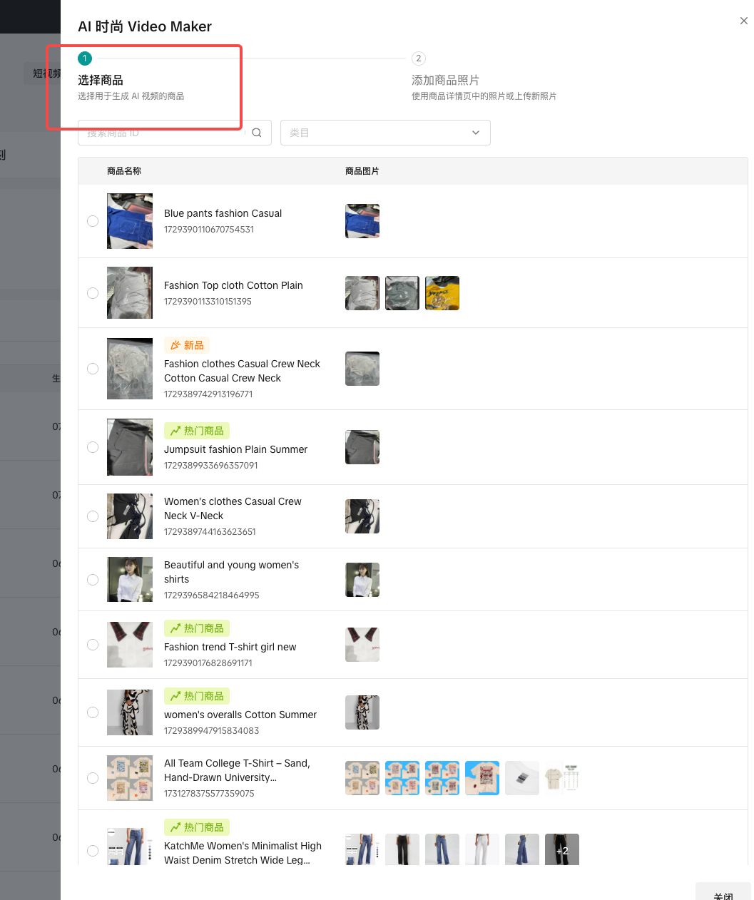 Seller Center上的服饰行业视频生成神器,只需上传三到五张产品的静态照片,无需模特、精心布置的场景或编辑视频的专业能力,即可生成带货短视频!